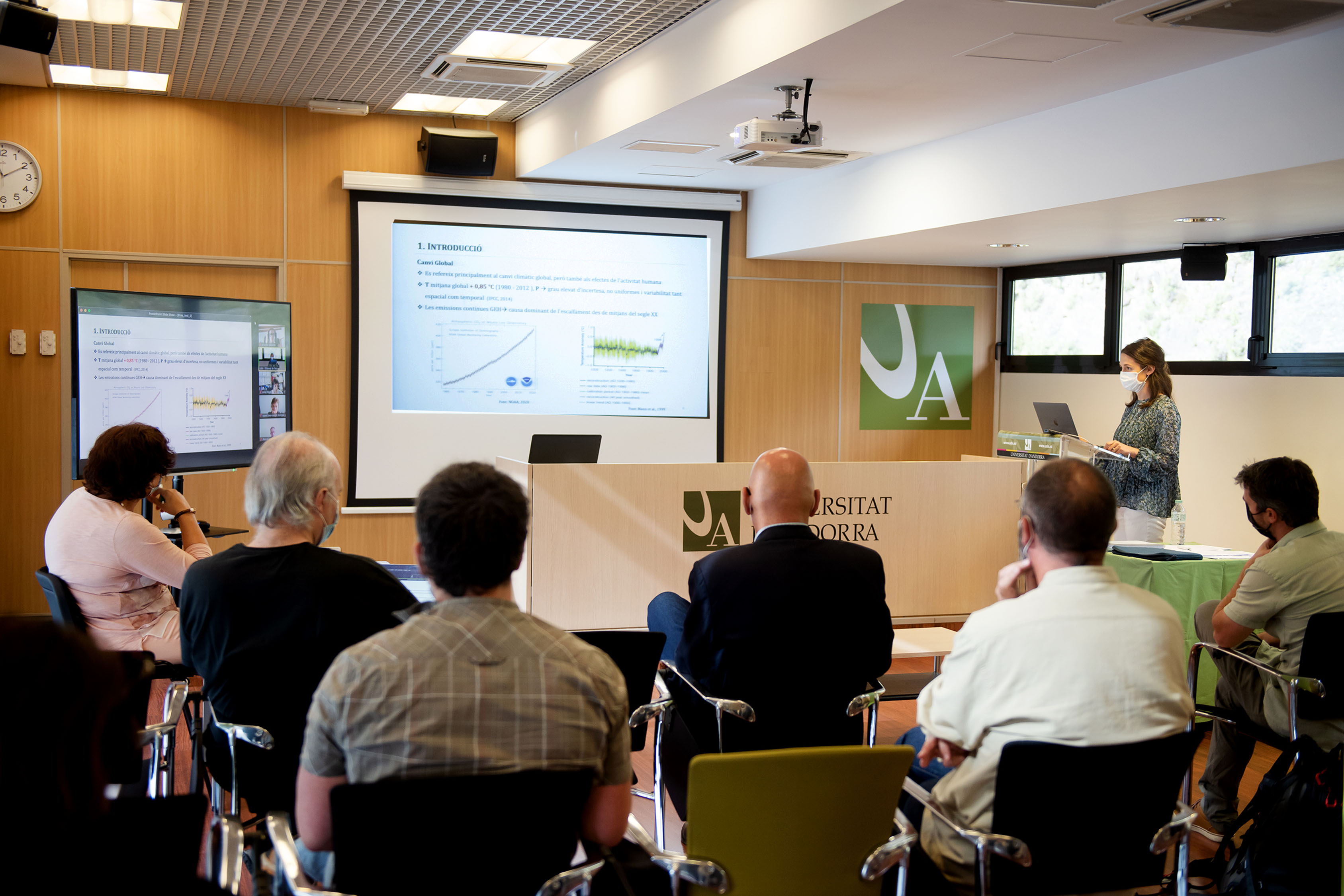 La Universitat d'Andorra (UdA) ha acollit aquest dimecres la defensa de la tesi doctoral de Cristina Pesado Pons, qui ha esdevingut la catorzena persona en doctorar-se per l'UdA d'ençà que es va posar en marxa el programa de Doctorat el curs 2009-2010, sota el títol 'La sostenibilitat de l'aigua a Andorra: efectes a llarg termini del canvi climàtic i socioeconòmic en el recurs hídric'. La tesi ha estat codirigida per Juan Ignacio López Moreno i Marc Pons Pons.