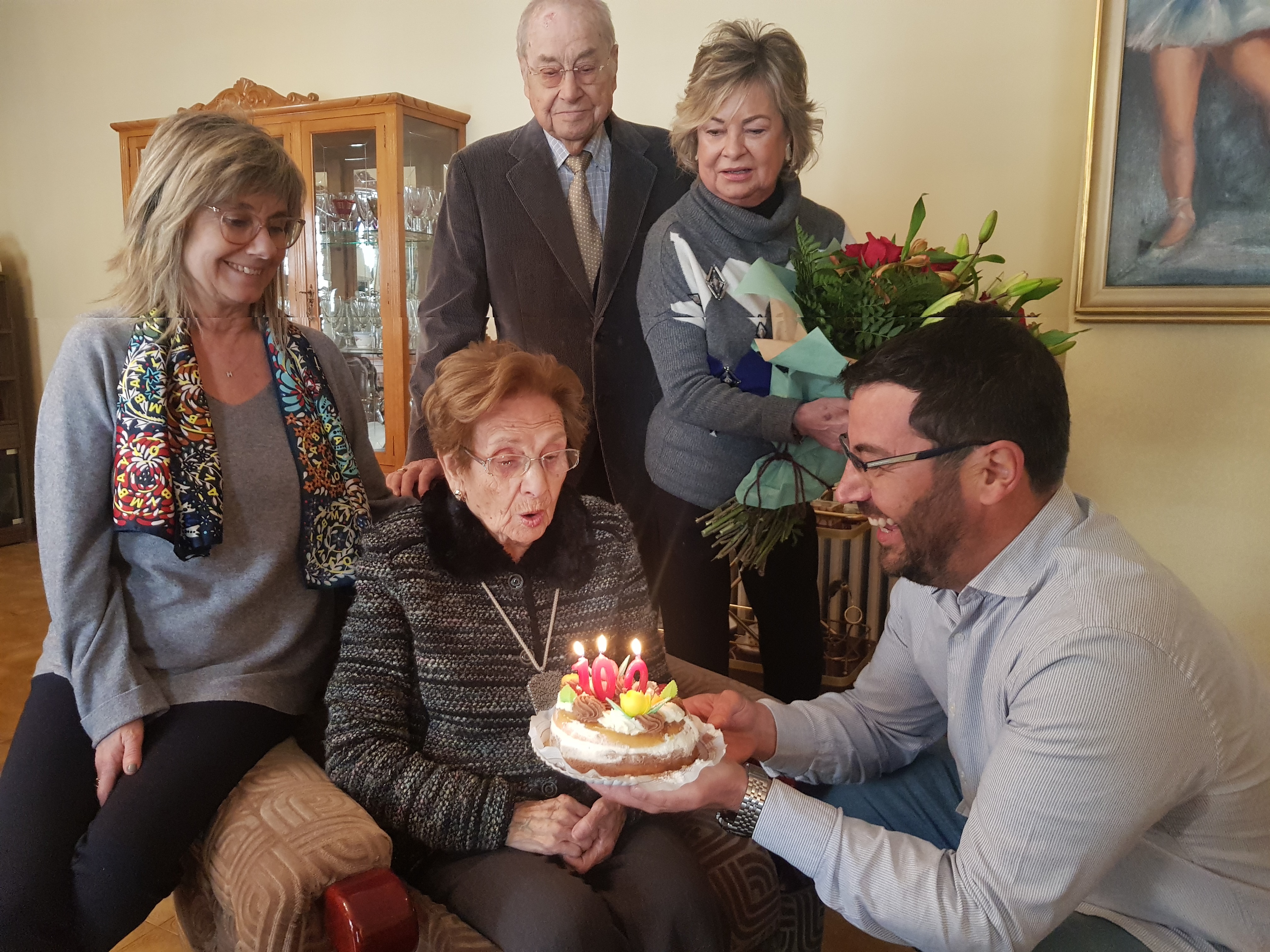 L’urgellenca Maria Miralles Riera ha rebut aquest migdia de mans de l’alcalde de la Seu d’Urgell, Francesc Viaplana, la Medalla Centenària de la Generalitat de Catalunya, una distinció atorgada per haver fet recentment 100 anys. L’acte de lliurament de la medalla a la centenària, juntament amb un ram de flors i un pastís d’aniversari, s'ha celebrat al domicili particular de l’homenatjada, acompanyada pel seu marit i dues filles. Maria Miralles Riera, nascuda el 4 de febrer de 1923 a Tàrrega, va venir a viure a la Seu d’Urgell de ben jove, i es va casar amb Jaume Nadal Feixas. Té dues filles, quatre nets i cinc besnéts. Gaudeix de bona salut i segueix mantenint l’afició per la lectura. La Medalla Centenària és una iniciativa del Departament de Drets Socials. Es tracta d’una medalla d’argent gravada amb el nom i l’any de naixement commemorativa del centenari.