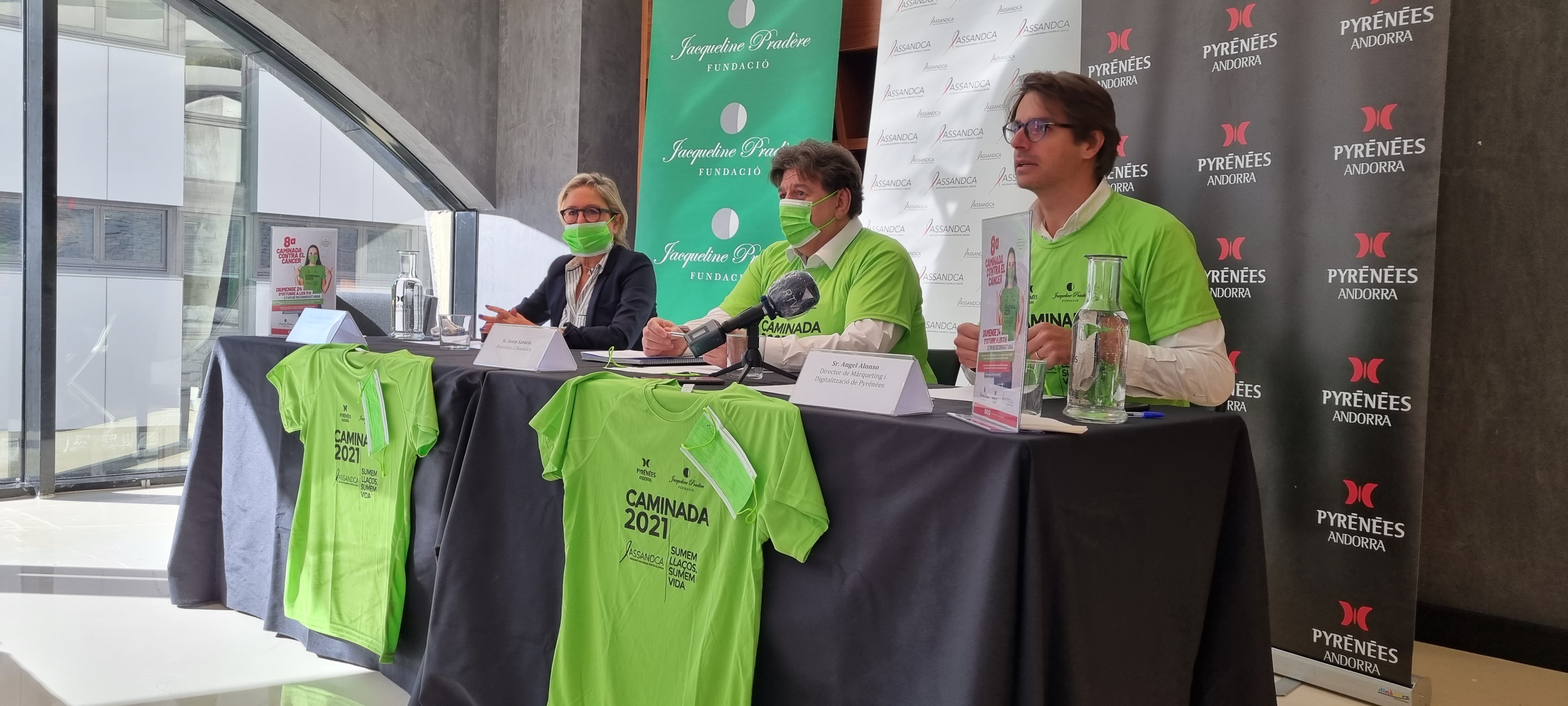 Després que l'any passat la caminada contra el càncer tingués un format virtual, enguany l'Associació Andorrana Contra el Càncer (Assandca) recupera la presencialitat de la iniciativa i anima la població a participar en la vuitena edició. La presentació de la caminada, que se celebrarà el pròxim diumenge 24 d'octubre a les 11h, s'ha dut a terme aquest dimarts als grans magatzems Pyrénées de la mà del president de l'entitat, Josep Saravia, el director de màrqueting i digitalització del grup Pyrénées, Àngel Alonso, i la vicepresidenta Fundació Jacqueline Pradère, Cristina Urbiola.