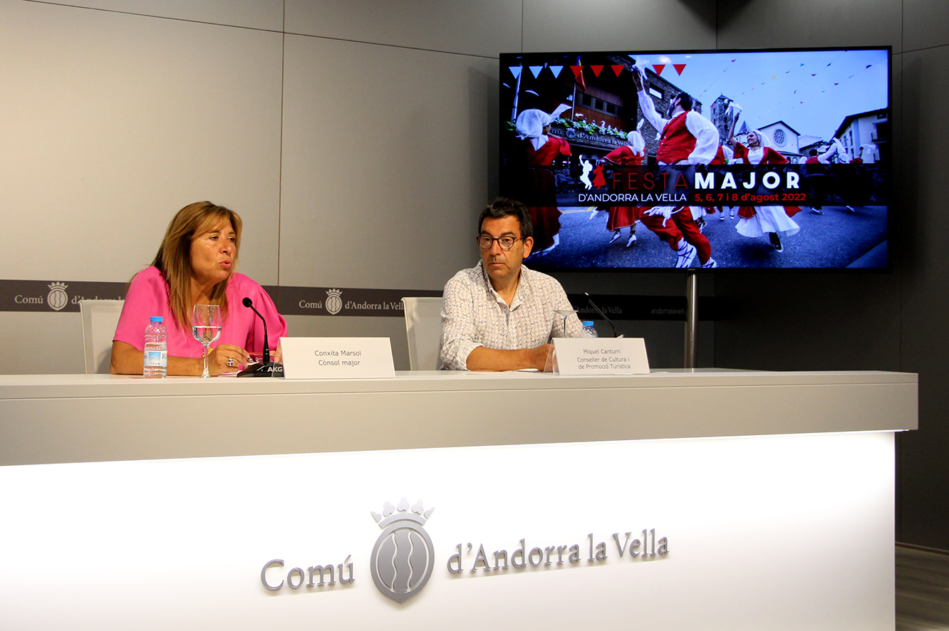 El tret de sortida a la festa serà el pregó que aquest any protagonitzarà l'Esbart Dansaire d'Andorra la Vella, que celebra 40 anys de vida. "Hem volgut que el pregó el facin ells", ha destacat Canturri, que ha afegit que des de l'esbart han convidat dos grups de ball del Perú i de Mèxic que al llarg de la festa major oferiran actuacions. A més, l'esbart protagonitzarà el ball del Contrapàs el diumenge 7 d'agost a la una del migdia amb la novetat del vestuari. El mateix divendres el grup que actuarà a la plaça Guillemó serà Roba Estesa, a les quals seguiran el grup de Lleida Koers. Dissabte els encarregats de posar la música a la plaça seran Oques Grasses, que l'any passat van estrenar treball, 'A tope amb la vida'. Tot seguit Ptazeta i Juacko ompliran l'escenari amb rap i músiques urbanes. Diumenge es podrà gaudir de tot un clàssic de la festa major, La Principal de la Bisbal i tot seguit DKDAS Show Band, amb música de versions i disco. I el darrer dia de festa Ariel Rot i Kiko Veneno portaran a la capital la seva gira 'Un país para escucharlo' i Muchachito Bombo Infierno, que ja va actuar a Andorra la Vella el 2007, aportarà la seva "marxa" de rumba catalana per cloure la festa. "Serà un bon acabament de festa", ha manifestat Canturri.