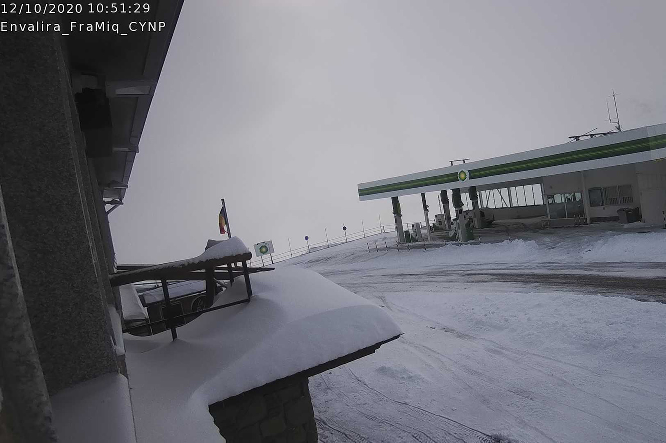 Segons informen des del servei meteorològic, durant la nit, la cota de neu ha baixat fins els 1.400 metres, amb la qual cosa, ja a partir d'aquesta alçada hi ha hagut alguns centímetres de neu. Les previsions per a les properes hores mostren que a mitja tarda es tornarà a cobrir i s'espera, durant la nit, noves precipitacions amb una cota de neu que se situarà a 2.200 metres. Cal destacar, també, que les nevades han obligat a fer servir equipaments especials per passar el port d'Envalira i per circular per l'RN-22.