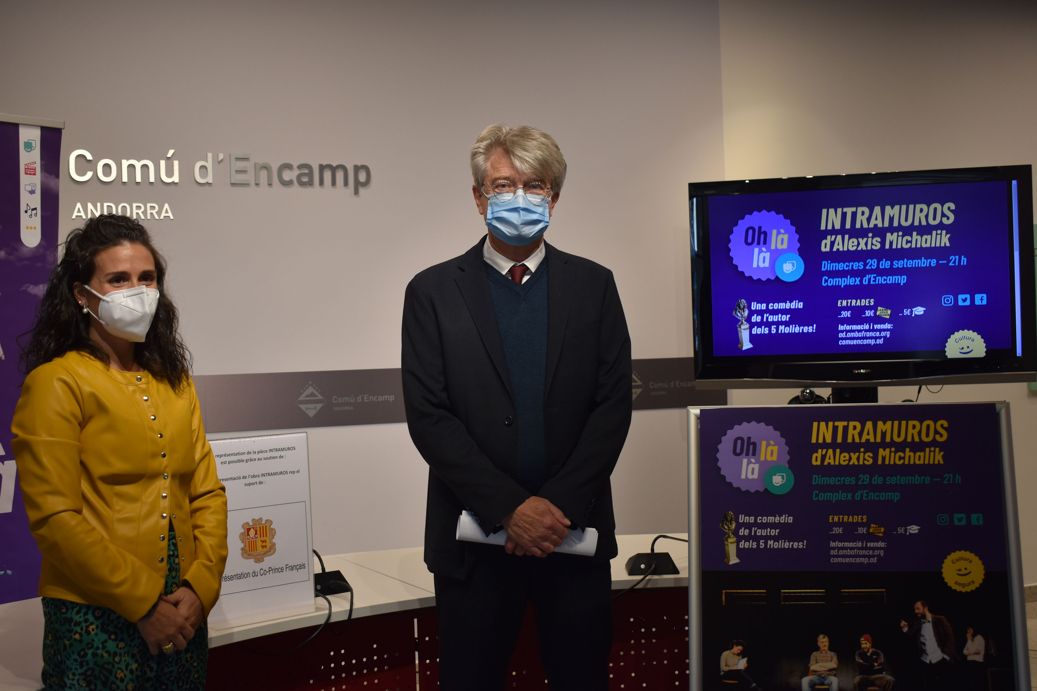 El Comú d’Encamp i l’ambaixada de França s’uneixen per difondre la cultura francòfona al Principat. La cònsol major de la parròquia, Laura Mas, i l’ambaixador francès, Jean-Claude Tribolet, van presentar la funció teatral Intra muros, que donarà el tret de sortida a la temporada 2021-2022 de la Saison Culturelle. Un espectacle que estava programat per a la temporada passada, però a causa de les restriccions imposades a l’Estat veí del nord degut a la pandèmia, es va haver de postergar. Intra Muros és la quarta obra del director Alexis Michalik i es representarà dissabte 29 al Complex Esportiu i Sociocultural d’Encamp a les 21 hores.
