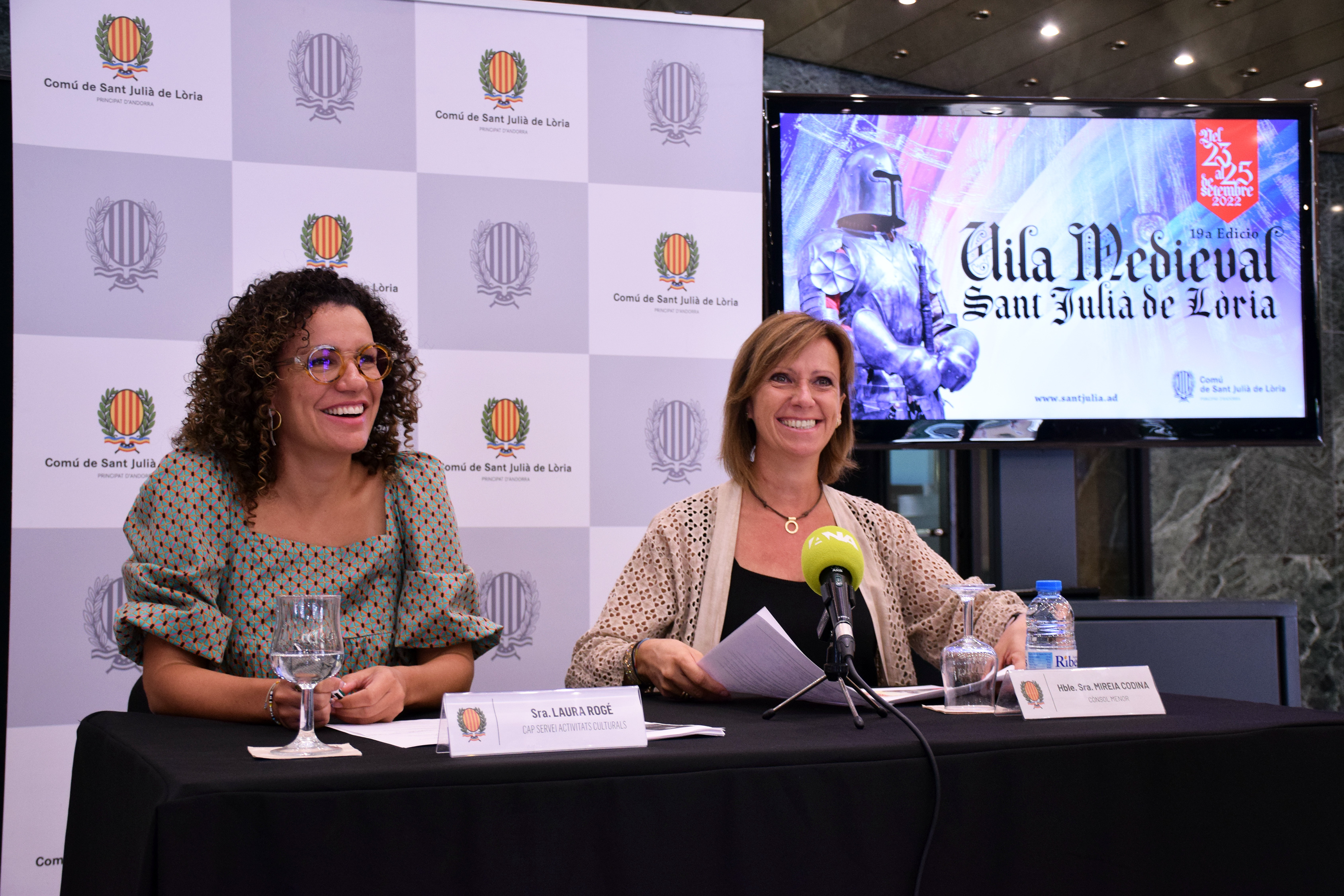 Sant Julià de Lòria torna a celebrar del 23 al 25 de setembre la Vila Medieval, un esdeveniment que enguany arriba a la 19a edició i que compta amb un programa farcit d'activitats per a tots els públics. De fet, tal com han explicat aquest dilluns la cònsol menor laurediana, Mireia Codina, i la cap del servei d'Activitats Culturals, Laura Rogé, en total hi haurà una trentena de propostes diferents al llarg del cap de setmana, les quals inclouran tallers, espectacles, concerts, animacions itinerants i activitats familiars. A més a més, es comptarà amb 60 parades de gastronomia i productes artesans que, com és habitual, s'ubicaran a l'avinguda Verge de Canòlich, concretament des de LAUesport fins a la plaça Major.