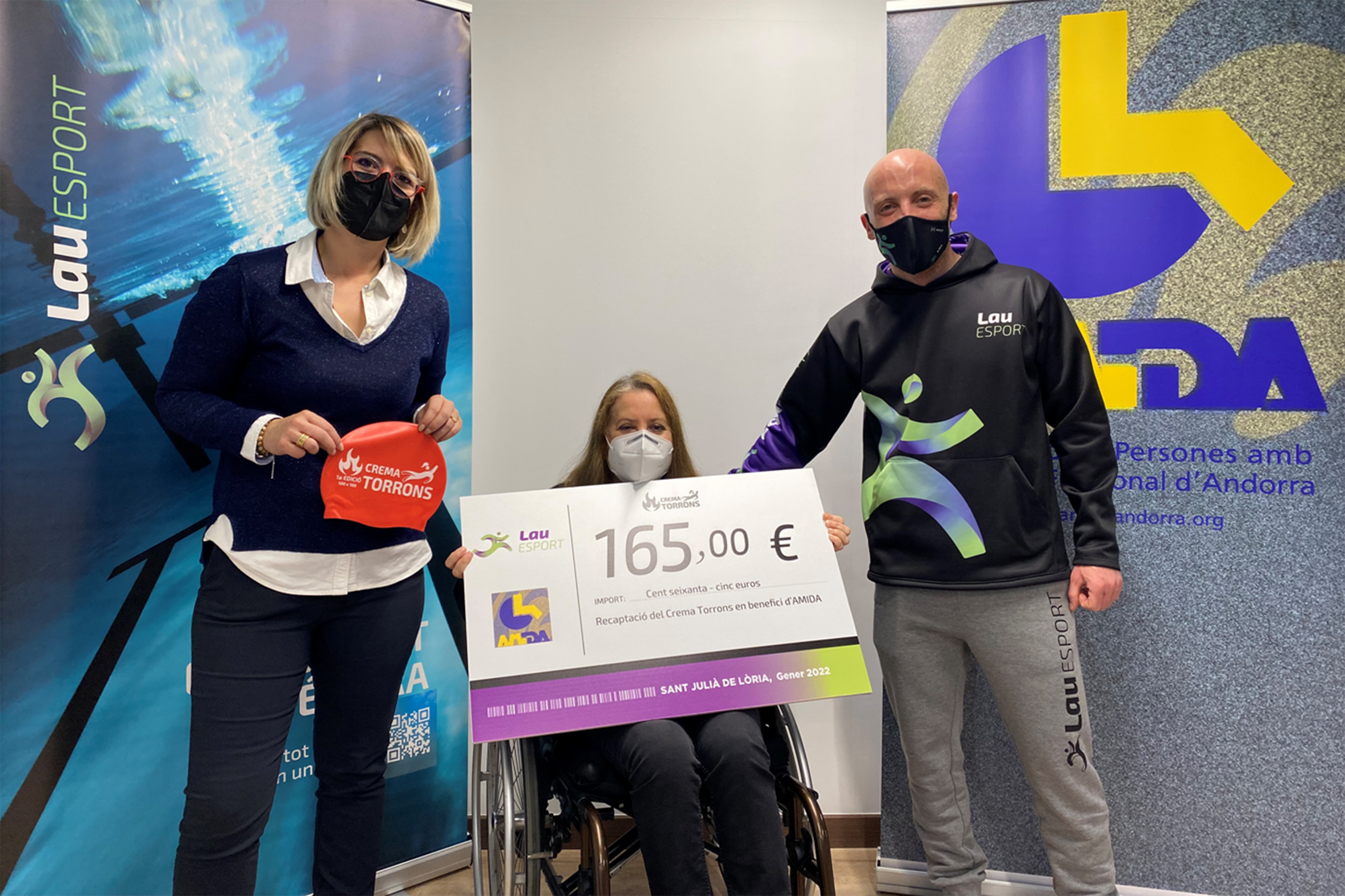 El centre de LAUesport va acollir dissabte l'entrega solidària del crema torrons que es va dur a terme el 23 de desembre passat.Tal com va apuntar el seu director Oscar Balcells, "LAUesportva néixer amb l'objectiu de fomentar els hàbits saludables a través de l'esport, i també diferenciar-se i posicionar-se com una entitat que es preocupa pel desenvolupament i implicació en projectes socials". Per aquest motiu, tot el recaptat per aquesta proposta que consistia a intentar fer 100 vegades 100 metres a la piscina, ha estat destinat íntegrament a Amida, que segons la seva presidenta Agustina Grandvallet "és una quantitat que anirà íntegrament adreçada a una campanya de conscienciació de la població".
