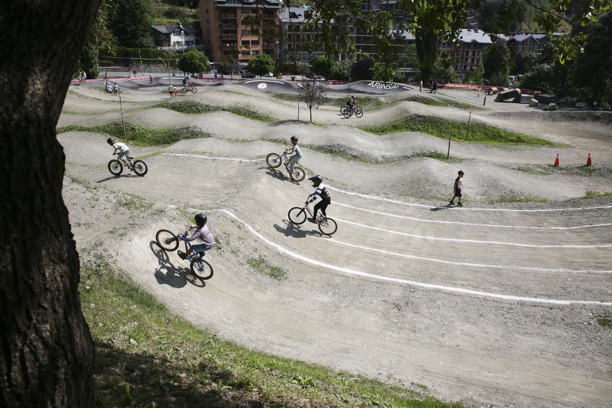 Arinsal va ser una de les zones de la parròquia de la Massana més castigades durant la temporada d’hivern per la no-obertura de les pistes d’esquí. Després de les converses mantingudes amb veïns i empresaris locals, des del Comú es va decidir focalitzar els esforços de l’estiu a la població per “revitalitzar” la zona i aconseguir una major afluència de turistes. Amb la reforma del circuit de les Berques, convertit en una zona esportiva de lliure accés, amb diferents pistes per practicar la bicicleta, els patins i l’skate, sembla que ho han aconseguit. Tot i que l’equipament es va posar en funcionament al juny, ahir, coincidint amb la festa major del poble, la corporació en va fer la inauguració i segons va explicar el conseller d’Esports, Kevin Poulet, es registra una afluència d’entre 40 i 50 usuaris al dia. “És molt important, i el cap de setmana veiem que ve molta gent de fora. Ens dona molta vida”, va afirmar. L’espai, de 6.000 metres quadrats, consta de cinc zones: el circuit de BMX, un recorregut de sentit únic que ja existia i que ara s’ha ampliat i millorat; el Dirt Jump, per fer figures acrobàtiques amb bicicleta; el Pump Track, amb salts i peralts per fer amb bicicleta, patinet o monopatí; la zona trial, amb obstacles naturals i artificials; i el recorregut de Cross Country, que es pot fer amb bicicleta de muntanya a l’estiu i amb raquetes a l’hivern.