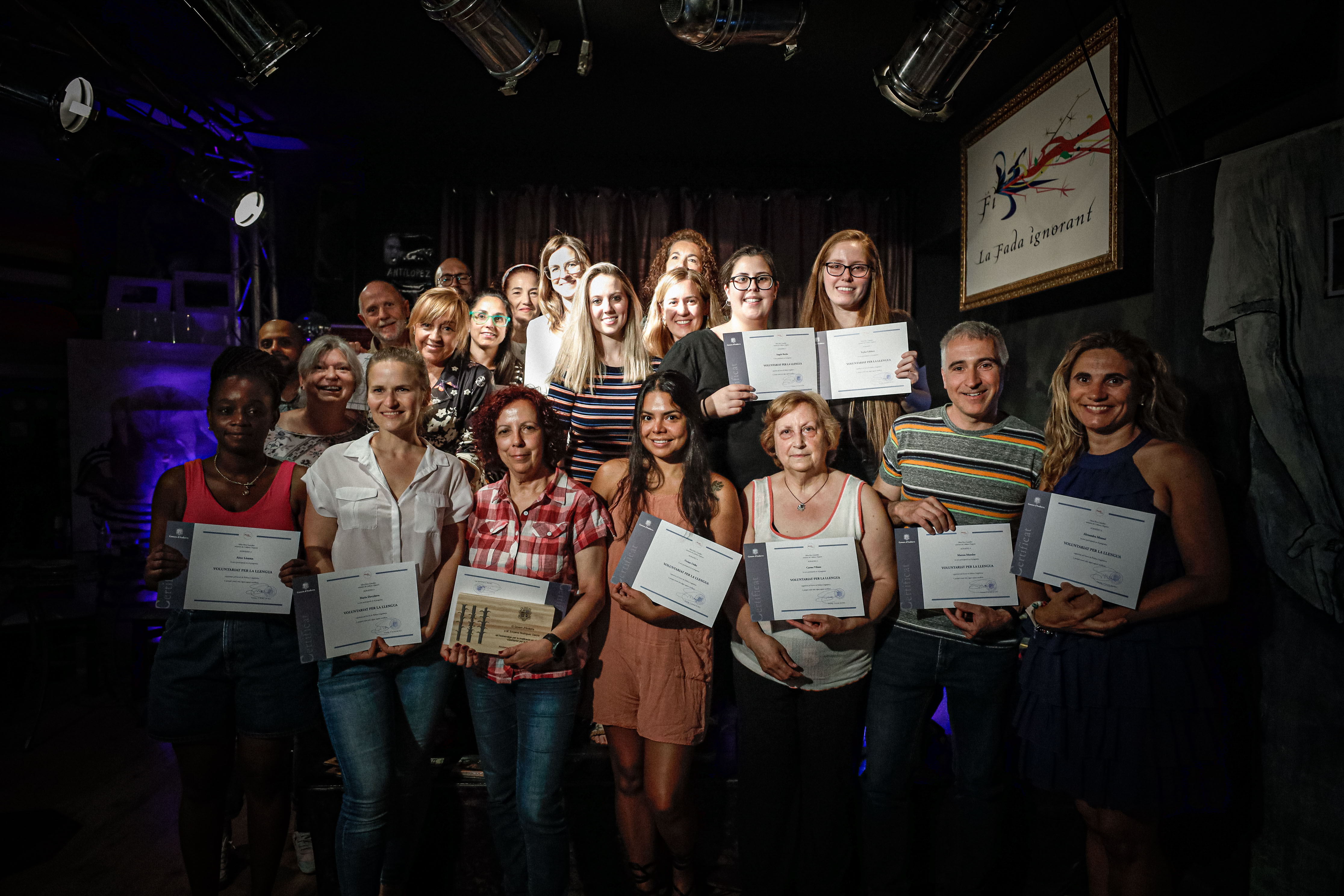 La festa de final de temporada s’ha celebrat al cafè-teatre La Fada Ignorant, on s’ha ofert un sopar pica-pica amb copa de cava i s’han lliurat els diplomes de participació a les parelles lingüístiques d’aquesta temporada. A més, i de forma especial, també s’han entregat plaques de reconeixement a tres voluntàries que han format part del projecte d'ençà que va començar, l’any 2005. La vetllada s’ha completat amb música en directe a càrrec del grup de rumba catalana Dumingu.