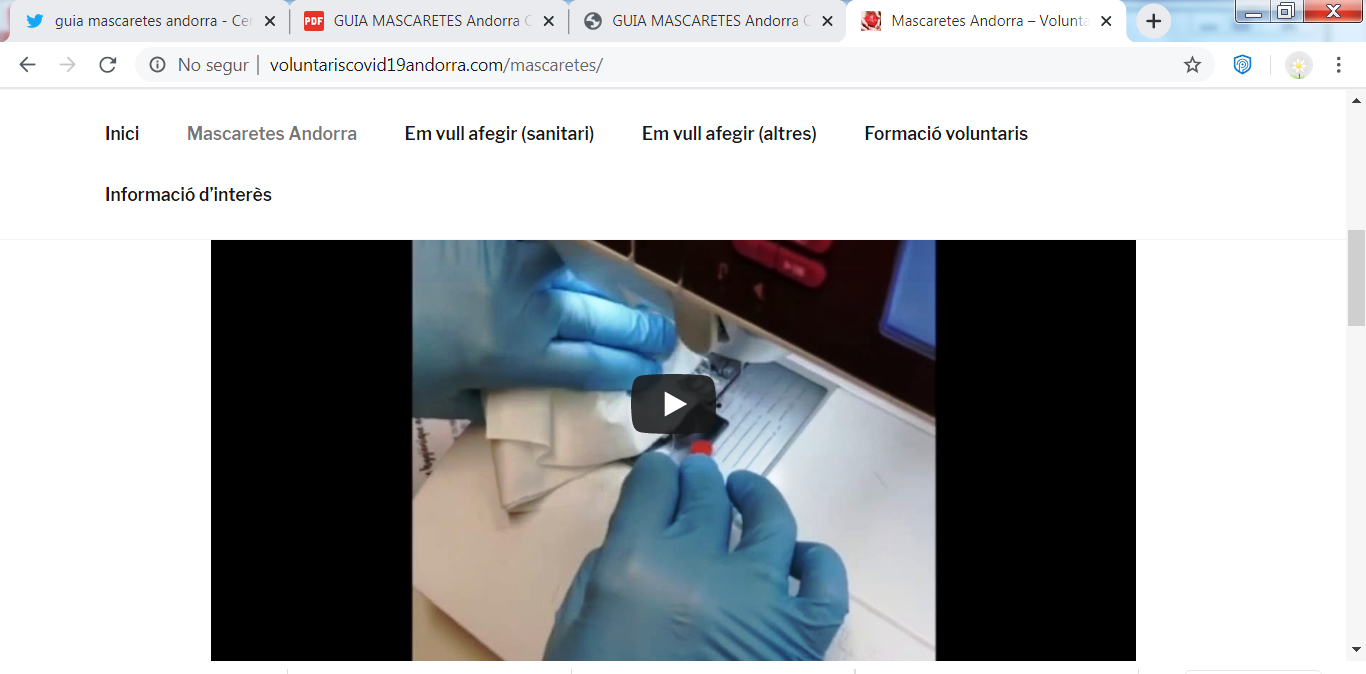 Segons ha explicat el propi Padreny, han rebut uns 500 'mails' per dia. "La resposta ha estat brutal", ha subratllat. Per aquest motiu han habilitat un nou domini que conté tota la informació necessària per a la confecció de les mascaretes: www.voluntariscovid19andorra.com/mascaretes. En aquest web es pot trobar una guia així com un vídeo tutorial per seguir el procediment adequat.
