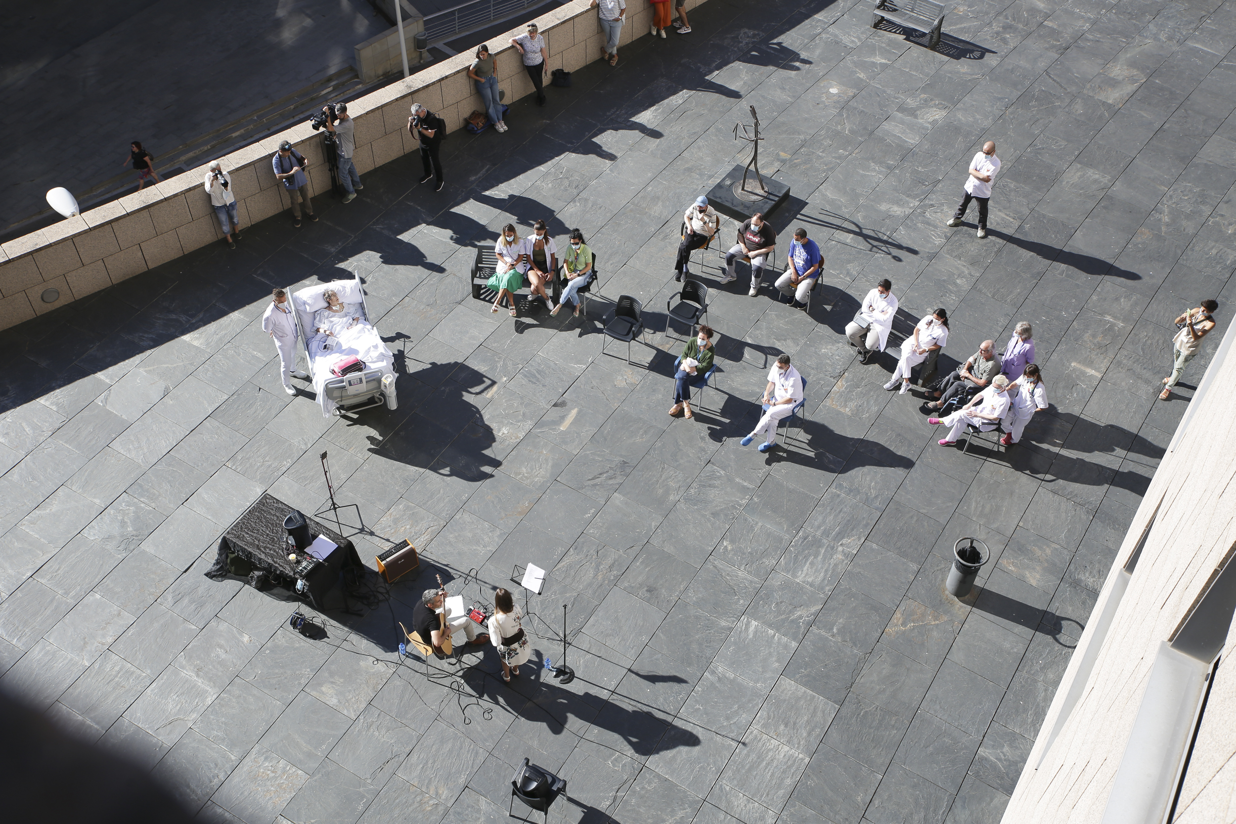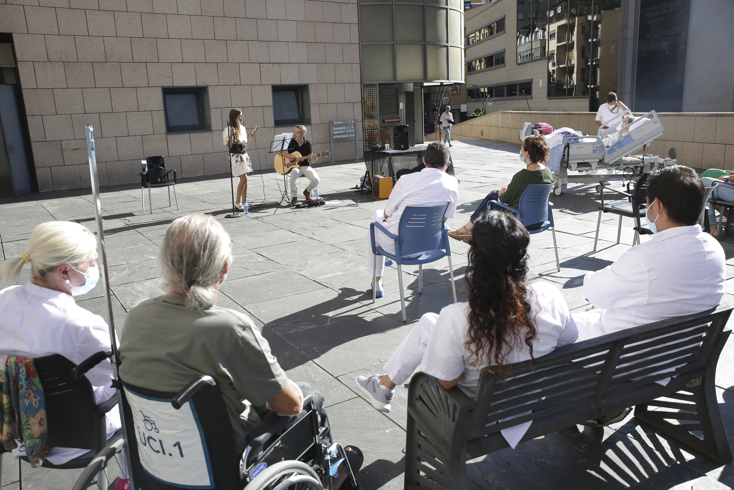 La unitat de cures intensives de l'hospital Nostra Senyora de Meritxell va donant passos cap a la humanització, un projecte que lidera el seu cap, el doctor Mario Alfaro. I si a l'octubre passat es van estrenar les sortides terapètiques, avui s'han posat en marxa les sessions de musicoteràpia. La primera, que s'ha iniciat a la terrassa de la planta -3 ha anat a càrrec d'Ishtar Ruiz i Roger Rossell, guitarrista del duet K.r.e.m.m i hi han participat dos dels pacients de l'UCI a més de familiars i diversos professionals. La intenció és fer-ho, però, a l'interior de l'UCI en un format més acústic i suau amb l'objectiu de disminuir l'estrès i el dolor.