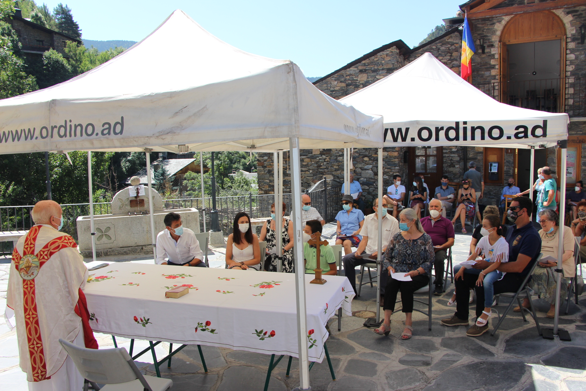 Aquest migdia a Sornàs, ha tingut lloc a l’exterior de l’església de Sant Roc, a la plaça Major, la tradicional missa dedicada al patró del poble. Hi han assistit una vintena de persones, entre les quals les autoritats de la parròquia, els cònsols d’Ordino, Josep Àngel Mortés i Eva Choy, i el conseller d’Agricultura, Medi Ambient i Sostenibilitat, Eduard Betriu.