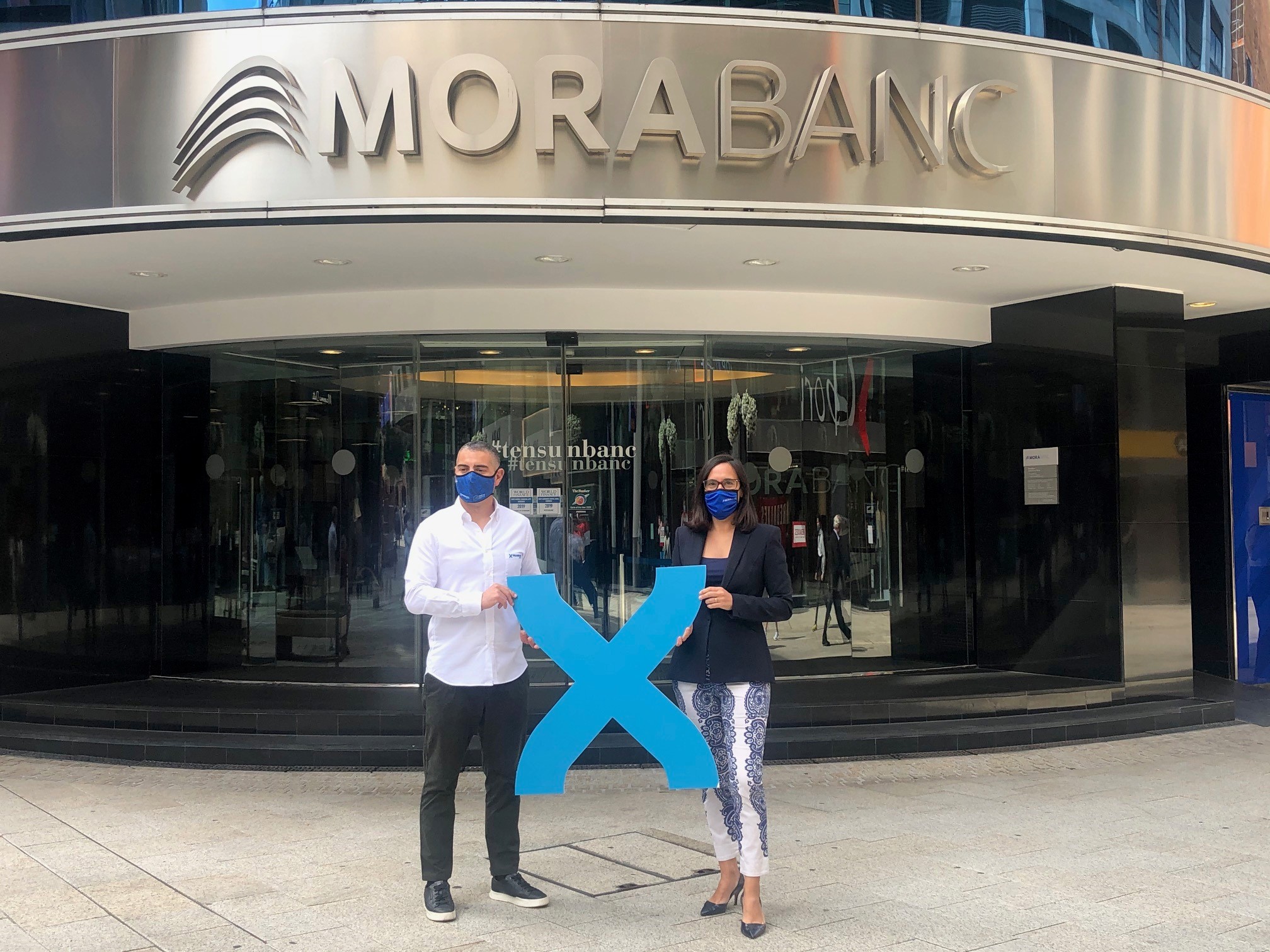 MoraBanc i Grandvalira han renovat el seu conveni per a les quatre properes temporades. La directora de Banca País del banc, Marta Riera, i el director de Màrqueting del domini de neu, David Ledesma, han escenificat la signatura de l’acord amb una imatge a l’exterior de l’edifici central de l’entitat financera.