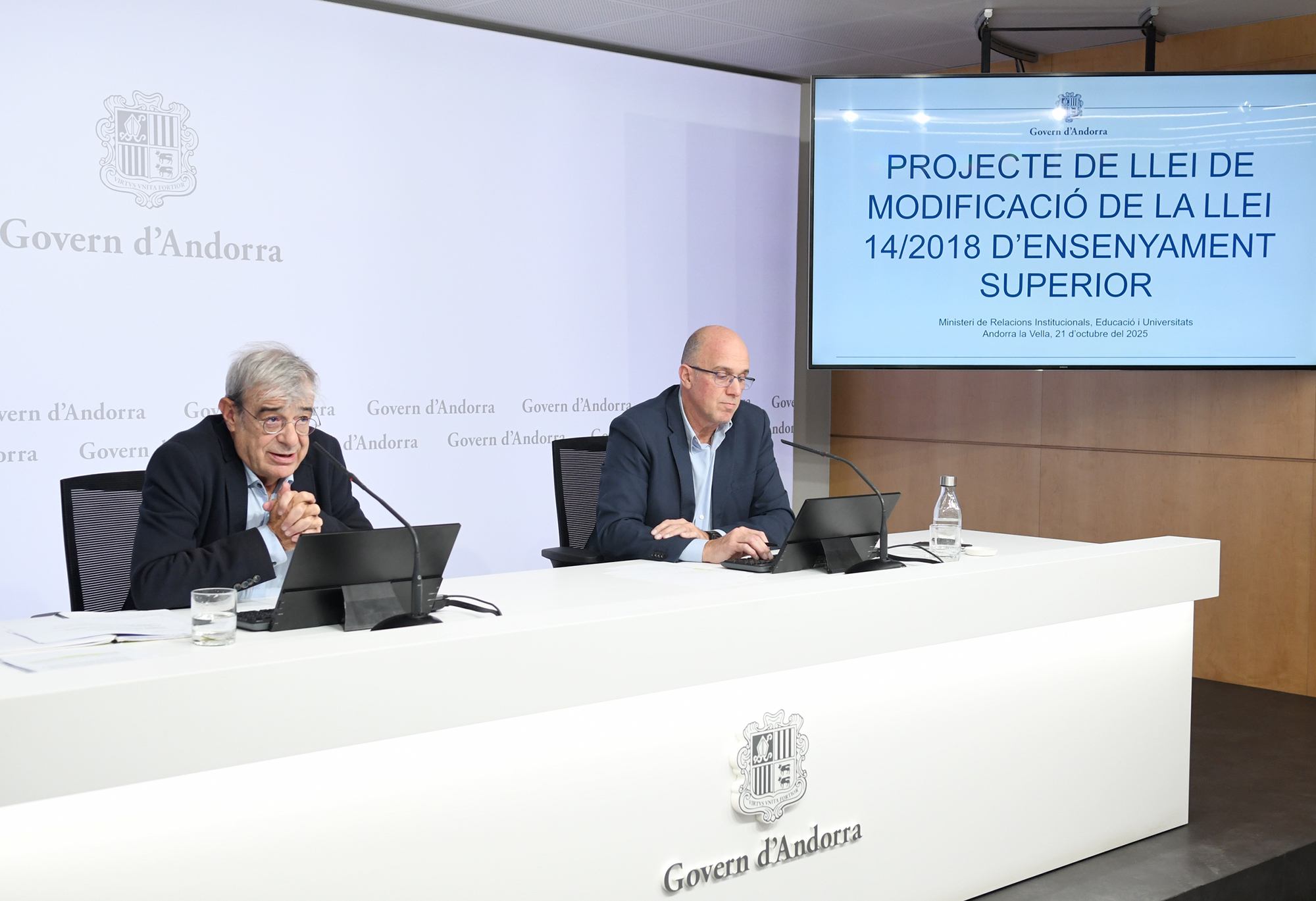 “No es tracta de replicar el model de creixement universitari que hem tingut fins ara”. I quina és doncs la finalitat? “Passar d’un model administratiu a un model estratègic que tingui intenció i prioritats”; és a dir, “que aporti valor afegit i innovació”. Així ho ha referit avui el ministre de Relacions Institucionals, Educació i Universitats, Ladislau Baró, en presentar el Projecte de llei de modificació de la llei de l’ensenyament superior del 2018 i els criteris de la primera estratègia nacional d’ensenyament superior.