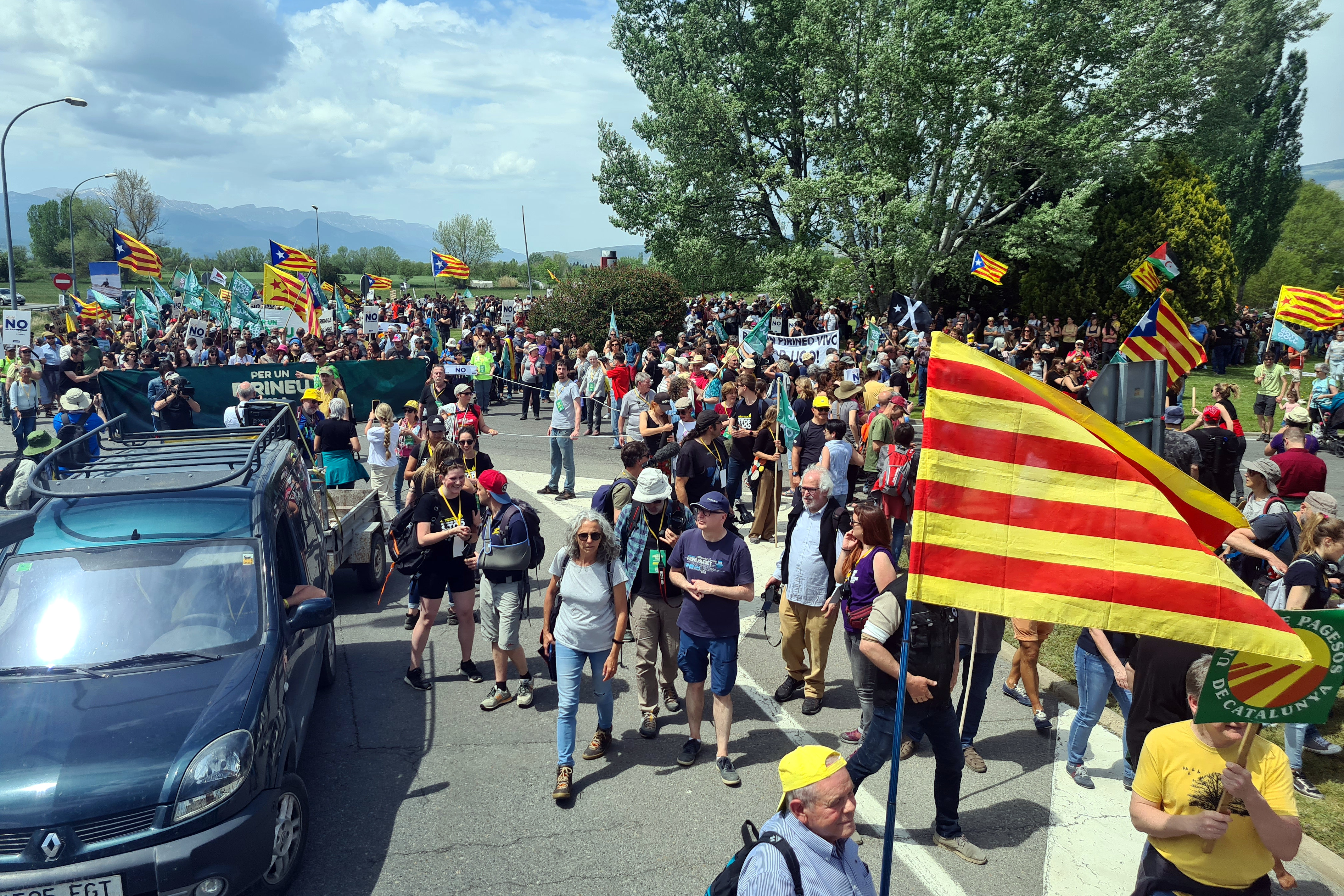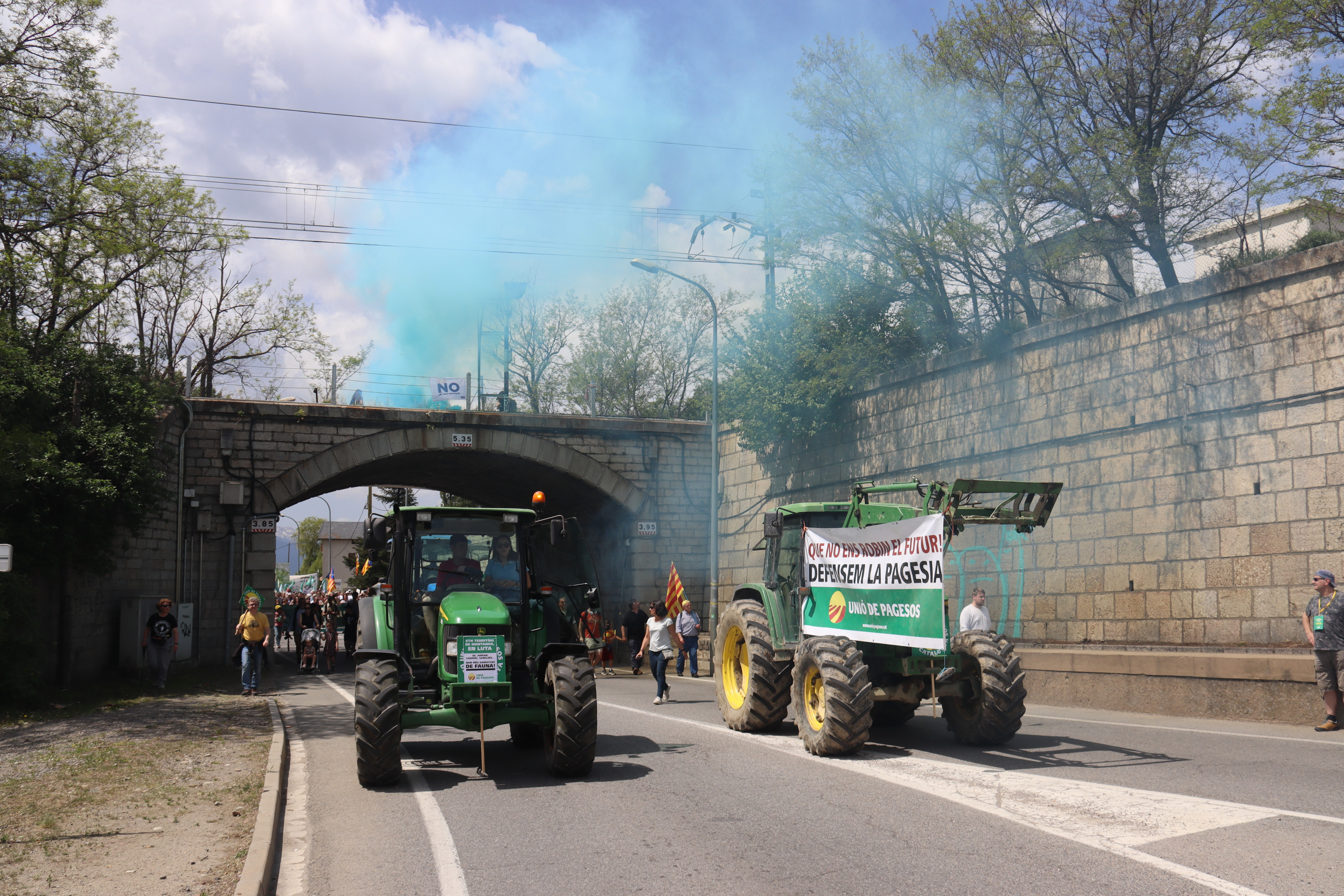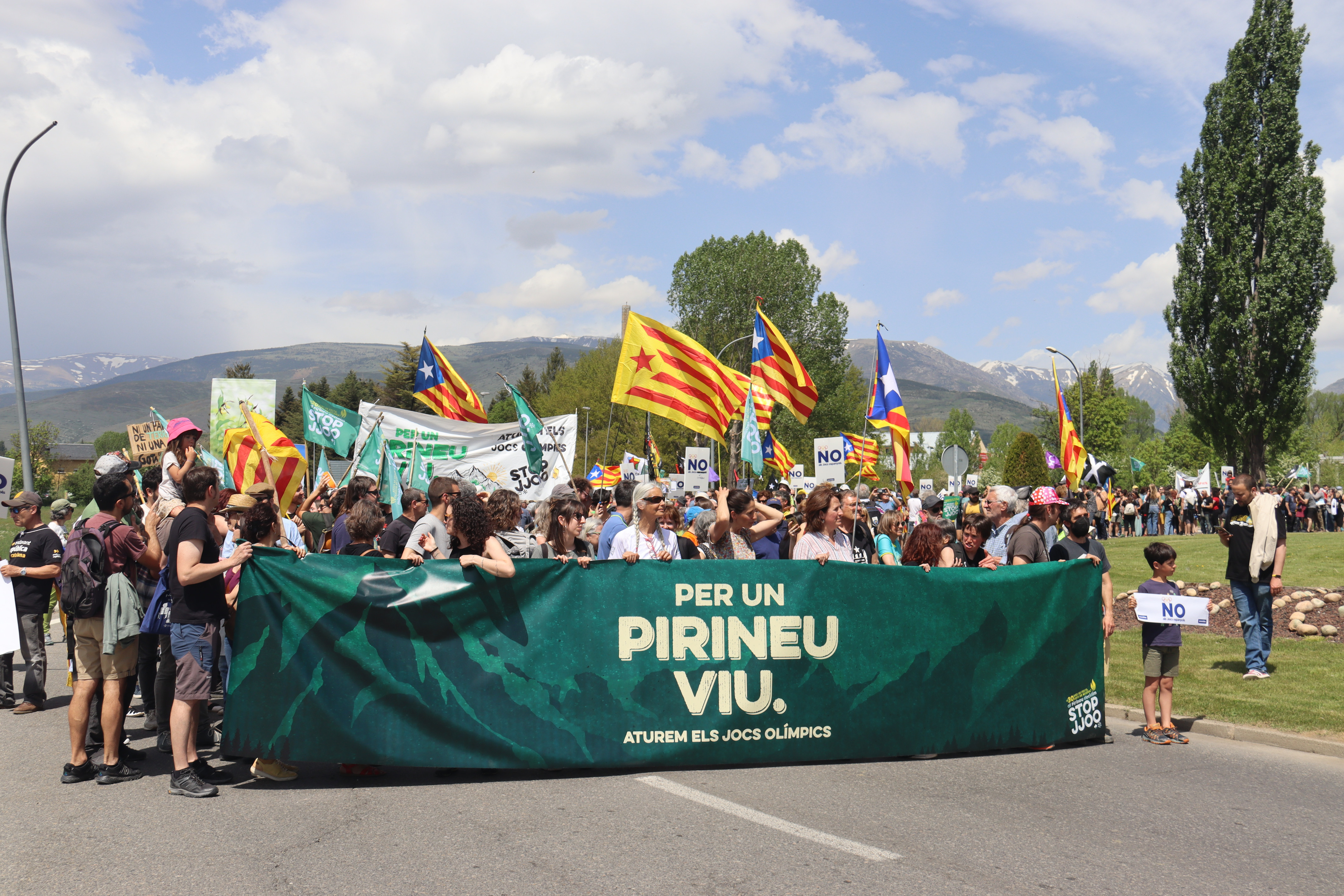 Puigcerdà s'ha omplert avui amb una mobilització convocada per la Plataforma Stop JJOO per mostrar el seu rebuig a la candidatura per acollir els Jocs d'hivern. La marxa ha arrencat a la zona industrial de la localitat, on s'hi ubica el recinte firal, i ha estat encapçalada per cinc tractors, que han acompanyat els manifestants fins a l'entrada del nucli urbà. Tot plegat ha suposat que aquesta acció reivindicativa s'hagi convertit en "històrica" a la capital cerdana. Partits com la CUP i els comuns s'hi han sumat i han demanat al Govern la retirada del projecte. També ho han fet entitats com l'ANC, que ha col·laborat en la logística de l'acte. Els Mossos han xifrat l'assistència en 2.500 persones, pels 5.000 dels organitzadors.