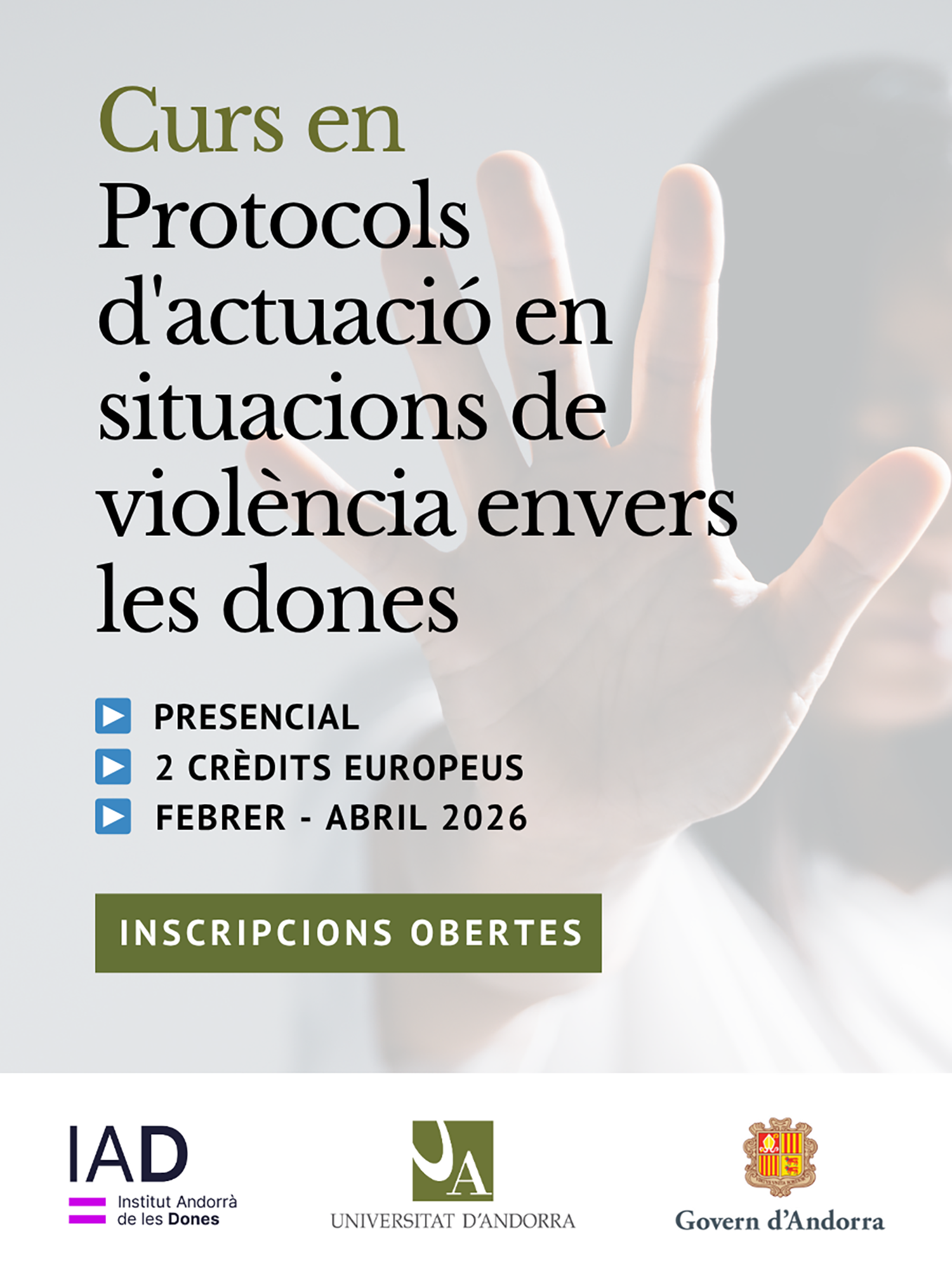 El Govern, a través de la secretaria d’Estat d’Igualtat i Participació Ciutadana, la Universitat d’Andorra i l’Institut Andorrà de les Dones (IAD), han posat en marxa el primer curs en protocols d’actuació en situacions de violència envers les dones, una formació adreçada a professionals que intervenen en l’atenció a víctimes de violència de gènere. Les preinscripcions s’inicien aquest dimecres i estaran obertes fins al 16 de gener.
