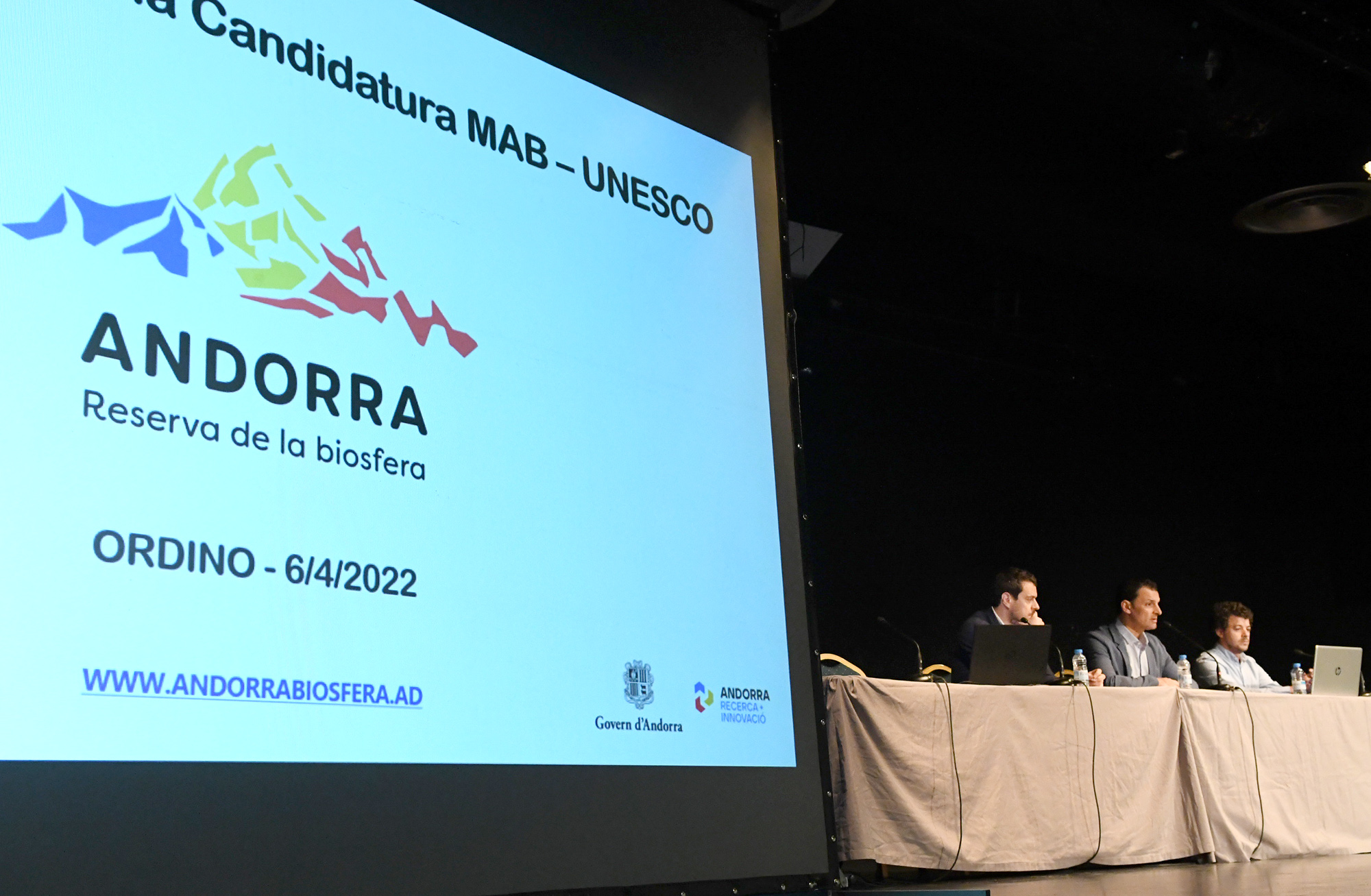 El ministre de Presidència, Economia i Empresa, Jordi Gallardo, acompanyat del secretari d’Estat de Diversificació Econòmica i Innovació, Marc Galabert, i Marc Font, tècnic d’Andorra Recerca + Innovació, ha ofert aquest vespre la primera reunió informativa sobre el projecte perquè Andorra esdevingui el primer país del món íntegrament reserva de la biosfera de la Unesco.