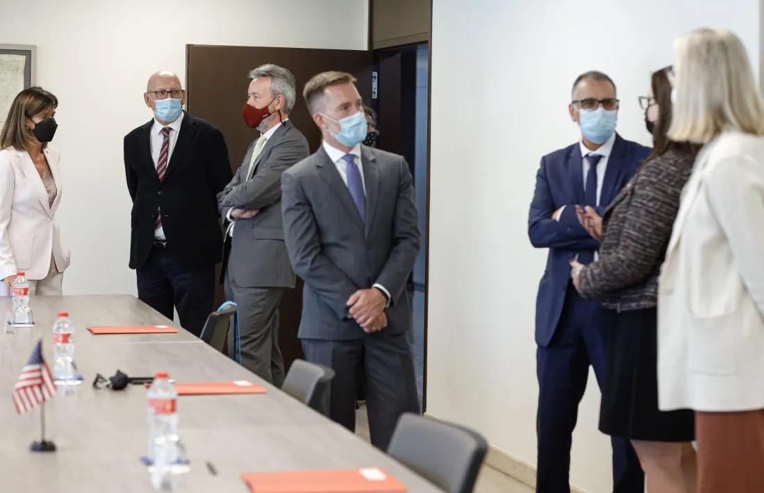 Per part americana, han acompanyat la cònsol Joseph Mellott, conseller de diplomàtica pública de l’Ambaixada dels EUA a Madrid, Elena Pujol, assessora de programes d’Afers Públics del Consolat dels EUA a Barcelona i Alberto Lopez, director de la Comissió Fulbright Espanya en tant que observador permanent del comitè.