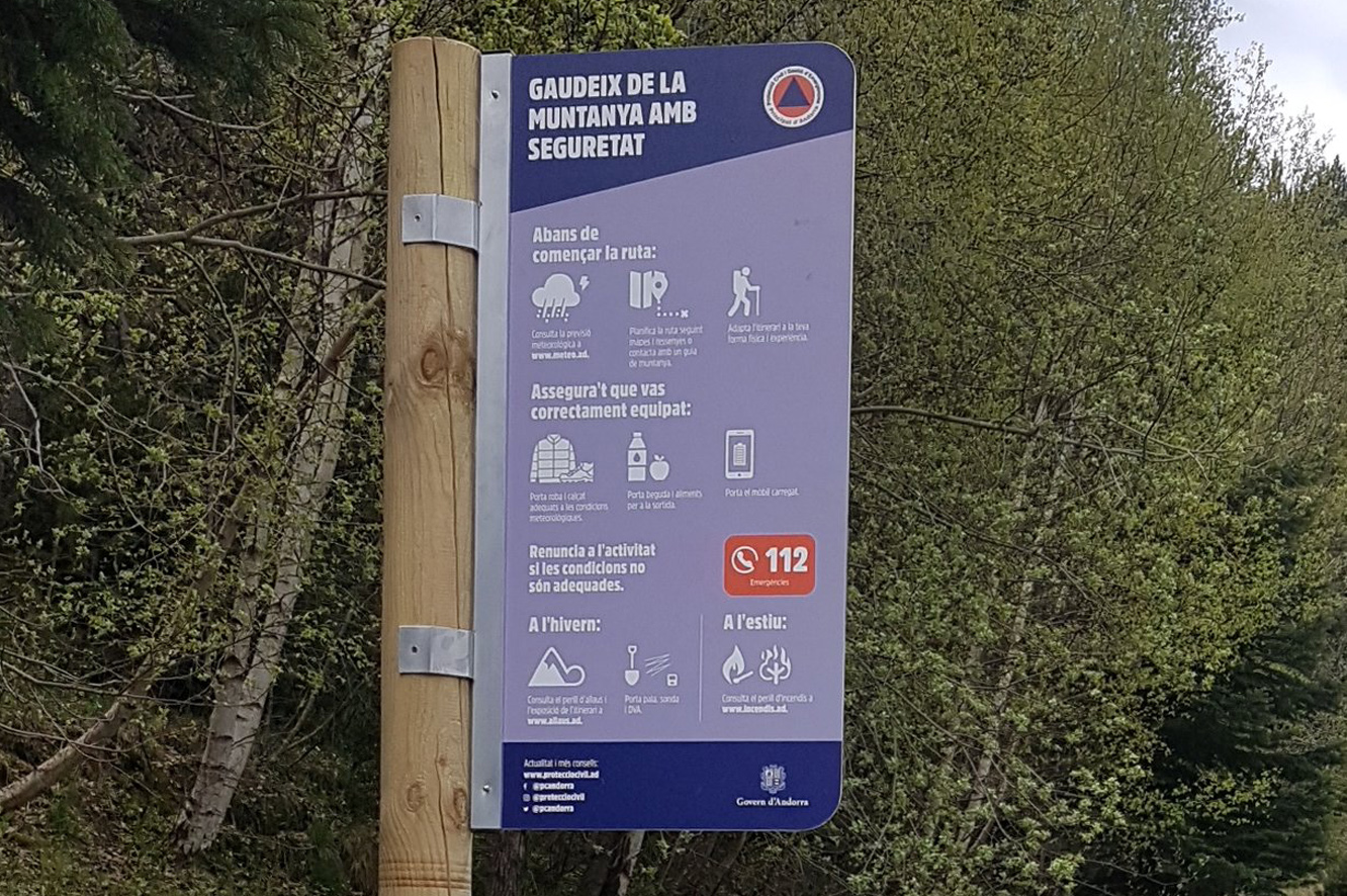 Amb la voluntat de sensibilitzar la població i donar informació per tal de prevenir possibles riscos a l'hora de dur a terme activitats a la muntanya, el departament de Protecció Civil, amb el suport dels set comuns, està instal·lant aquests dies una sèrie de rètols informatius als camins amb més afluència de cada parròquia. La idea és substituir els senyals que ja es van instal·lar el 2016, després que s'hagin anat degradant amb el pas del temps, per col·locar uns panells que compten amb un disseny més adaptat i integrat al medi. Segons ha explicat la cap d'àrea d'Implantació i Planificació de Protecció Civil, Yolanda Font, està previst que ara se'n col·loquin quinze, tot i que més endavant la voluntat és ampliar aquesta xifra en funció del pressupost.