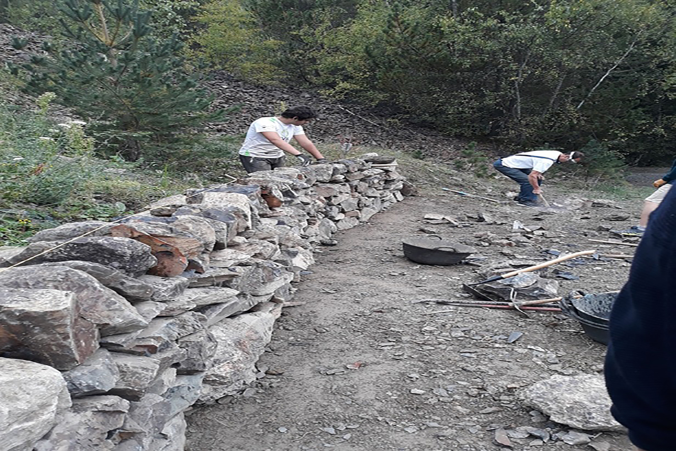 Pel que fa a la formació, de nivell avançat I, aquesta va adreçada a voluntaris i professionals que hagin superat el nivell d’iniciació i consistirà en la desfeta del mur existent i la reparació del mateix amb la tècnica de pedra seca. Aquesta reparació aportarà una millora, modesta, en l’estat de l’entorn i permetrà ampliar el coneixement dels vuit estudiants que hi participaran.