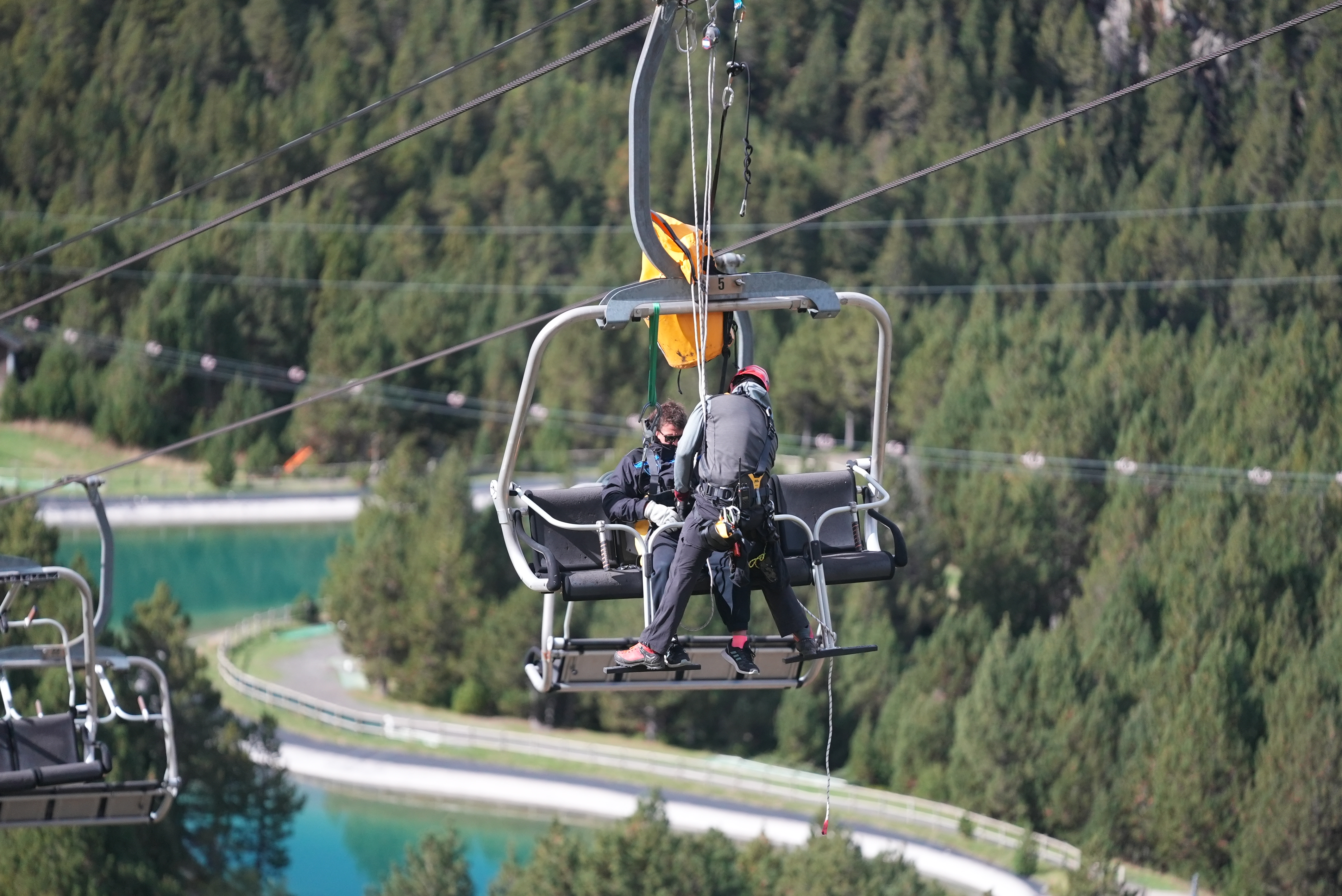 Prop d’una vintena de persones treballadores de l’escola d’esquí i altres serveis de l’estació s’han distribuït en grups al llarg de les diferents cadires mentre que els equips de pisters s’han dividit en les diferents pilones de la línia del telecadira. Un cop situats, s’ha simulat una aturada del giny i s’ha activat el protocol, en aquest cas d’evacuació vertical de les persones ubicades a les cadires. Entre els paràmetres a tenir en compte, també s’ha valorat el temps de durada per finalitzar amb èxit la intervenció. L’objectiu era establir les eines i el protocol perquè els pisters i els altres equips implicats que hagin d’intervenir en cas d’incidència o emergència, puguin resoldre la incidència amb la màxima eficàcia i celeritat.