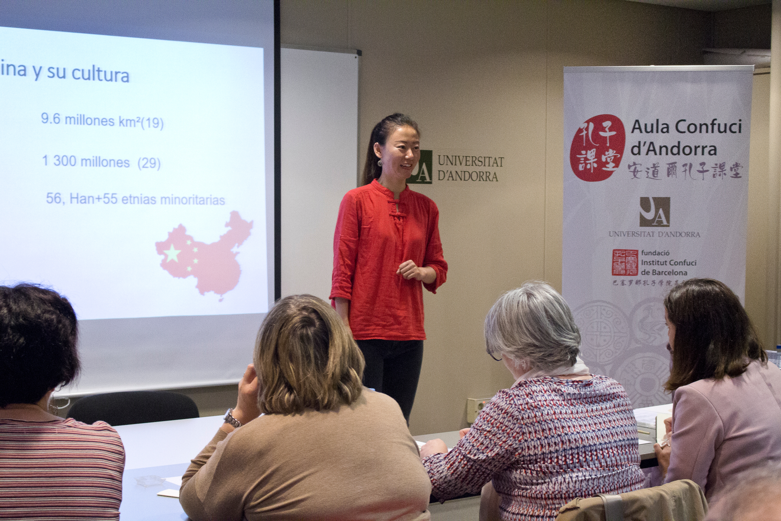 Pel que fa als cursos de llengua i cultura xineses, organitzats per l’Aula Confuci d’Andorra, es divideixen en quatre nivells: A1.1, A2.1, B1.1 i Intermedi I. Els estudiants aprenen el sistema de pronunciació (pinyin, sistema de transcripció fonètic), l’escriptura i el reconeixement de caràcters xinesos bàsics, la comunicació oral en situacions quotidianes, i també la riquesa de la cultura xinesa des de diferents angles: el protocol, la cal•ligrafia, el cinema, la música, les festes tradicionals, etc.