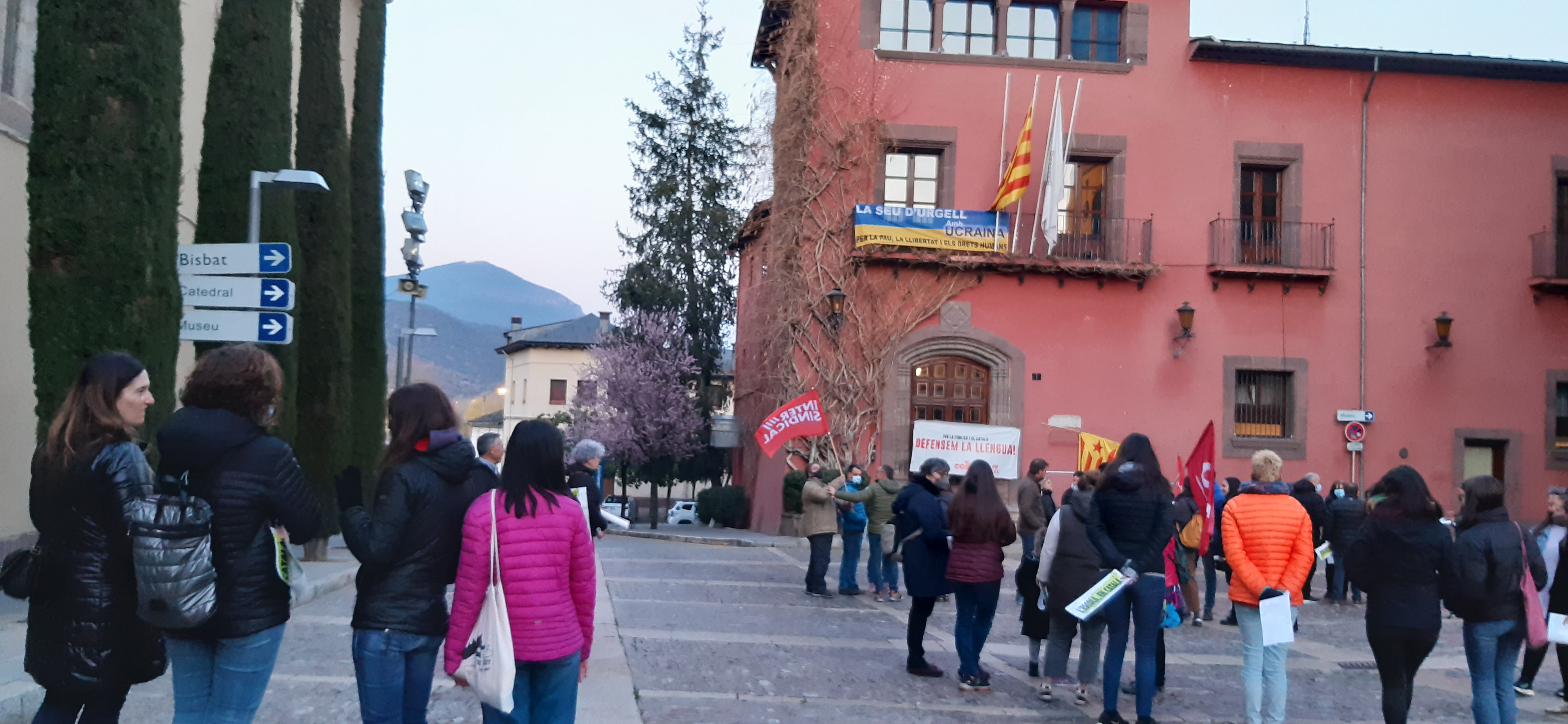 “La meva filla va estudiar tots els cursos en català, va fer Filologia Catalana i, en acabar, un màster de castellà. Qui dirà que no ensenyem català als nostres fills? Que vinguin i ens ho diguin”. Amb un parell d’intervencions espontànies, com aquesta, acabava la concentració d’ensenyants en defensa del català ahir al vespre. Convocatòria unitària (COS, Intersindical i USTEC-STES) que també incloïa jornada de vaga: un 11% de seguiment a tot Lleida, sense precisió de la comarca, apuntaven fonts sindicals. Davant de l’Ajuntament, prop d’un centenar de persones responien a la crida. La setmana vinent entra en vigor l’obligatorietat d’oferir el 25% de classes en castellà si les famílies ho demanen: això deixa “desprotegit” el docent que no ho vulgui, denunciaven des dels sindicats, per qui és una imposició des de la “maquinària judicial heretada del franquisme”, fruit de la connivència dels estats espanyol i francès contra els Països Catalans. Tot amanit amb la “covardia” de la Generalitat. La setmana vinent, dues jornades més de protesta.