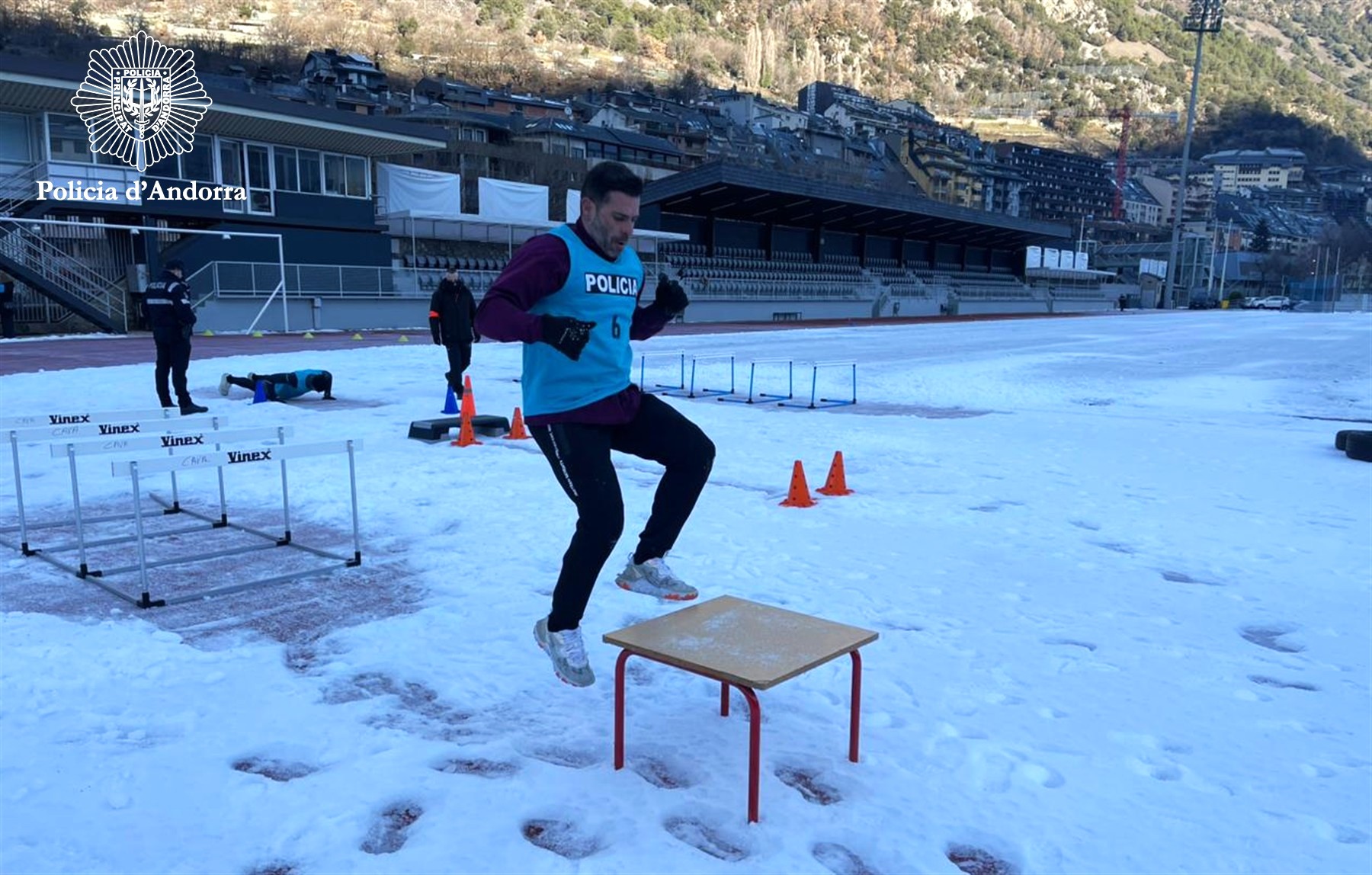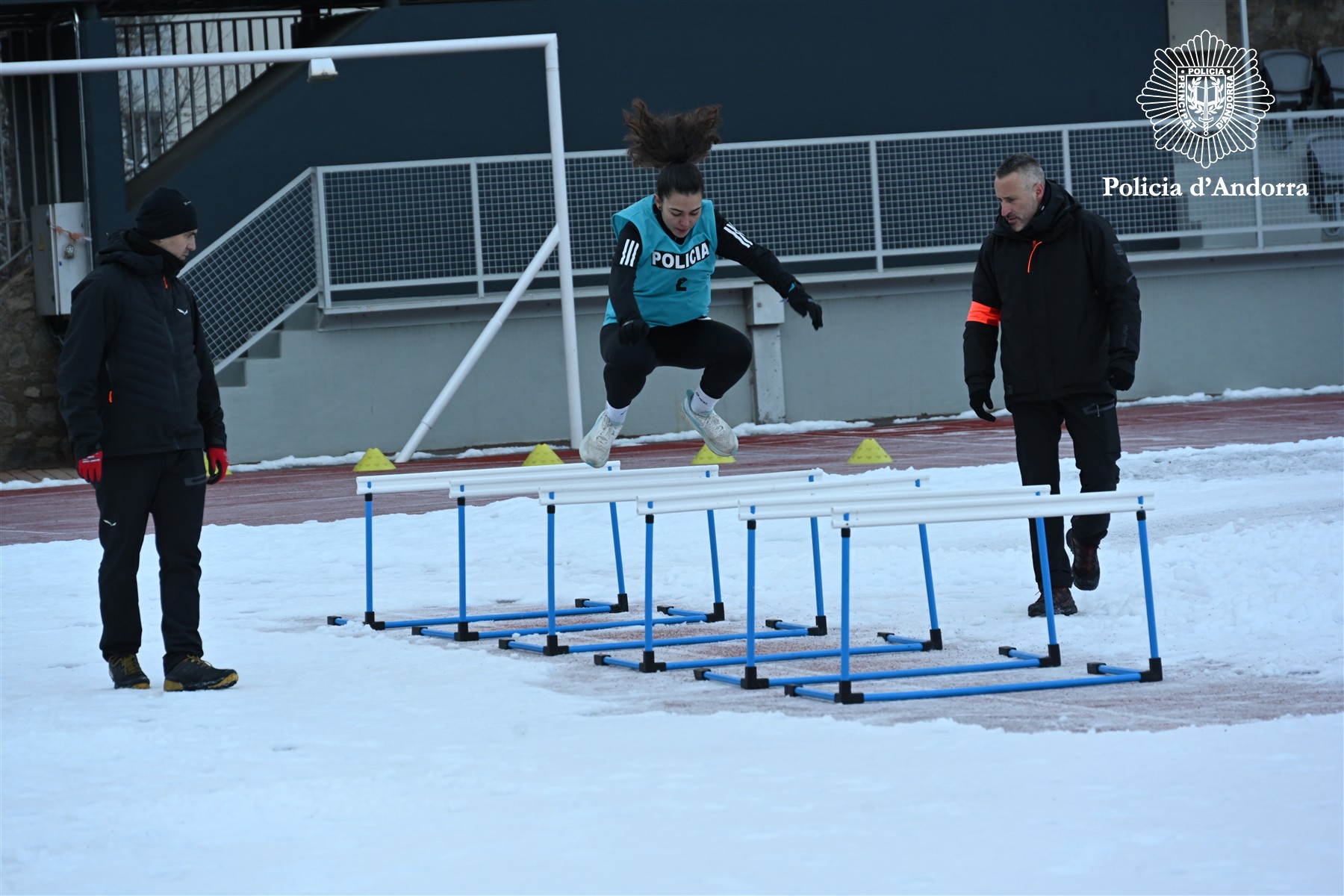 Els homes han d’aconseguir-ho en menys de 13 minuts i mig i les dones, en menys de 16. Al llarg dels anys, aquestes proves s’han anat actualitzant i adaptant a l’evolució de la feina policial amb barems que són un estàndard en l’àmbit europeu per a una condició física que ha de ser mitjana-alta per poder desenvolupar la tasca policial. Aquest matí la neu i el fred també han estat protagonistes. I és que, en les proves físiques, els aspirants a policia sempre s’han d’adaptar a les condicions meteorològiques del moment, tal com ho hauran de fer si aconsegueixen superar tot el procés i s’acaben incorporant al Cos.