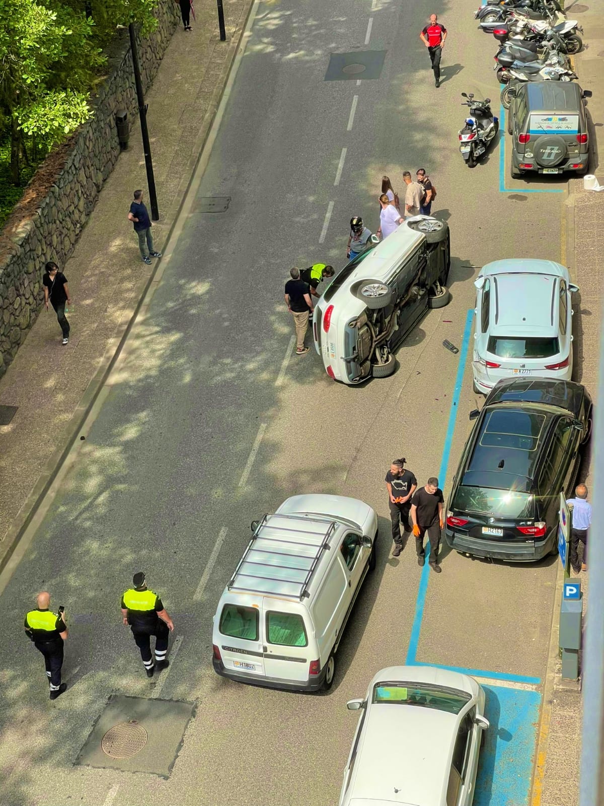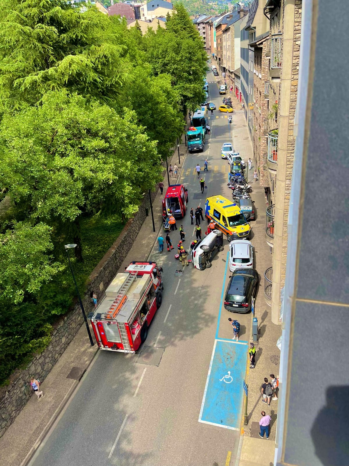 Els bombers han explicat que han rebut un avís a les 16.38 hores que hi havia una persona atrapada dins d’un vehicle bolcat i s'han desplaçat al lloc del sinistre. Poc després, ha arribat la policia que ha sigut alertada a les 16.39 hores i fins allà també s'ha desplaçat un vehicle del SUM i dotacions del servei de circualció d'Andorra la Vella. Segons ha notificat el cos d’ordre a través d’un comunicat, el vehicle implicat ha quedat bolcat a la calçada en col·lidir amb dos turismes estacionats (un BMW X3 i un Seat Ateca).
