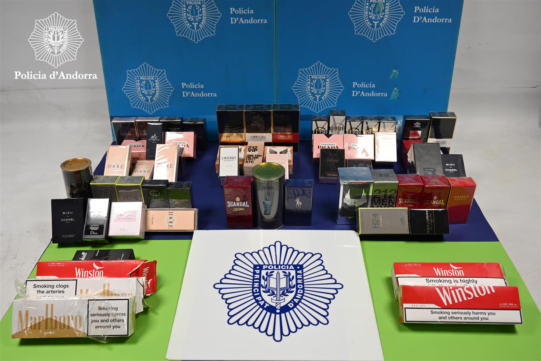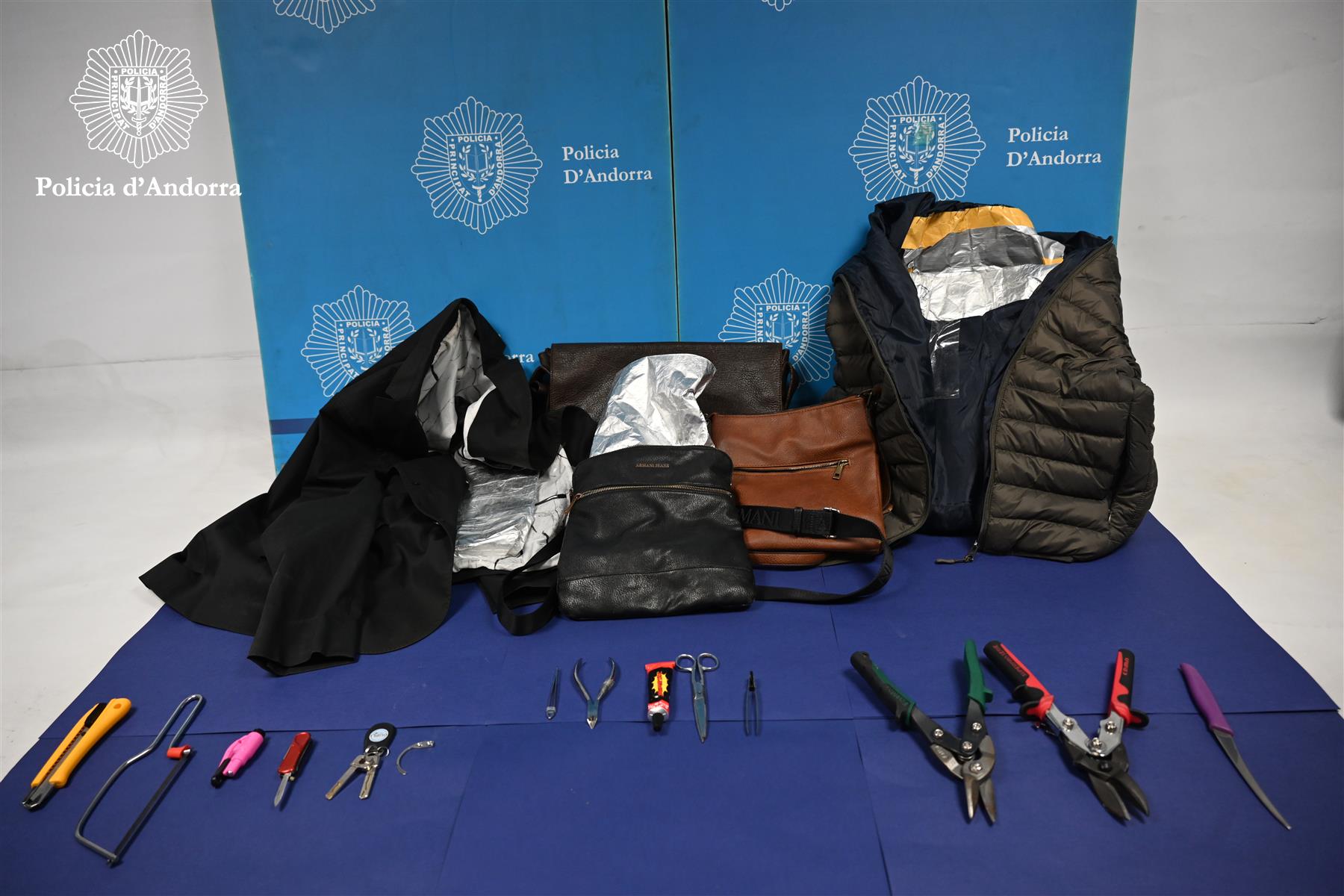 Se’ls va trobar 55 perfums, 45 paquets de tabac, jaquetes i bosses folrades amb paper d’alumini, així com estris que se solen fer servir per cometre furts de mercaderies, com tallaungles, alicates i imants per treure les alarmes als productes. El material sostret té un valor superior als 3.200 euros.
