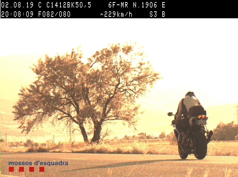 Els mossos d’esquadra han denunciat penalment un motorista de 33 anys, de nacionalitat russa i veí de Salou, com a presumpte autor d’un delicte contra la seguretat del trànsit. Els fets van succeir divendres passat durant un control de velocitat que agents de trànsit havien muntat a la carretera C-1412b, dins el terme municipal d’Isona i Conca Dellà (Pallars Jussà). A les vuit del vespre, els mossos van detectar una motocicleta amb matrícula espanyola que circulava a 229 km/h en un tram de carretera on la velocitat màxima permesa és de 90 km/h.