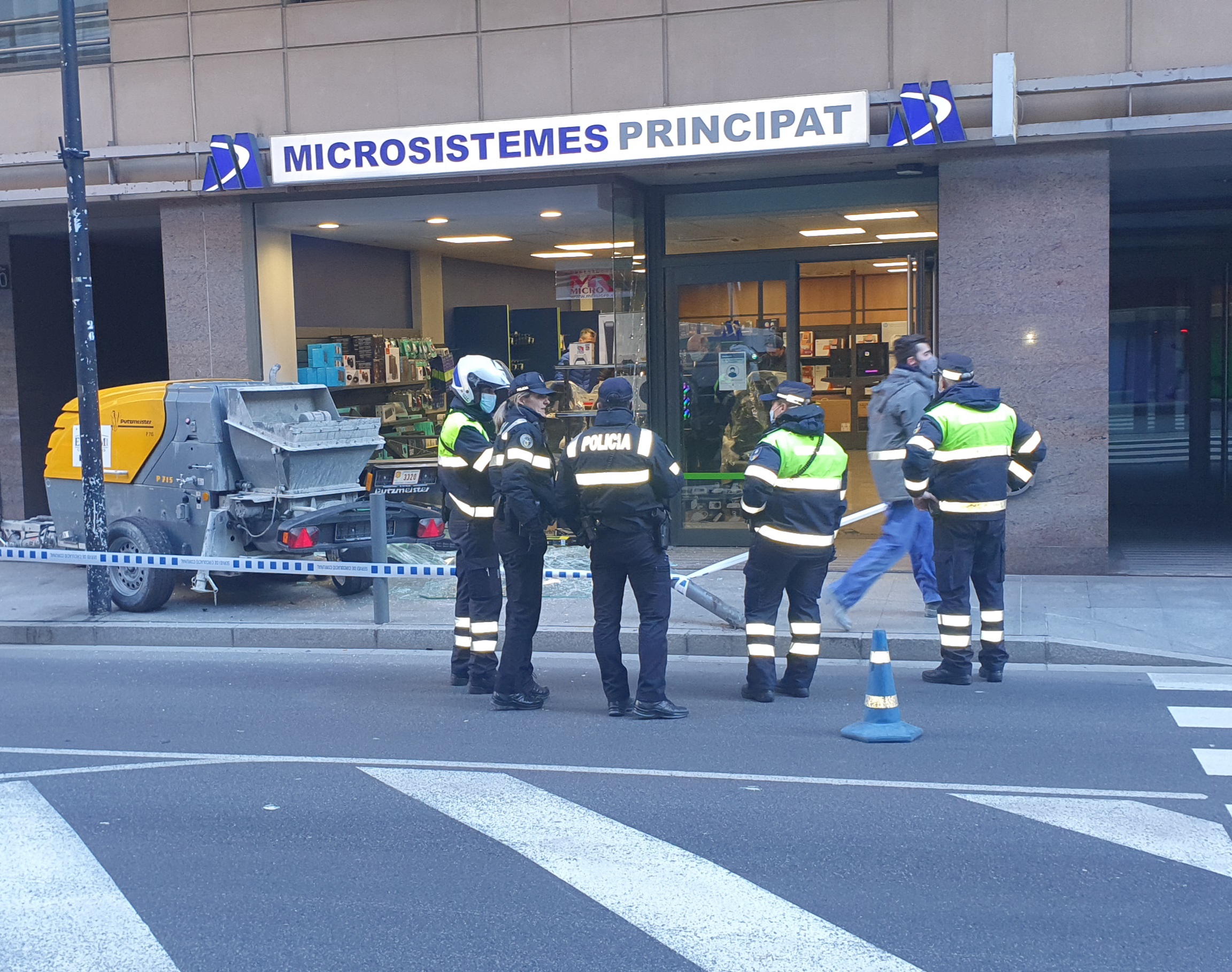 Una màquina d'obres transportada en un remolc s'ha enclastat aquest matí contra l'aparador d'una botiga d'informàtica del carrer Baixada del Molí, tocant a la Seu de la Justícia. Els fets han succeït cap a dos quarts d'11 del matí quan operaris d'una empresa de construcció transportaven en un petit remolc una màquina que s'ha desprès del remolc i s'ha anat a encastar contra l'aparador de la botiga.