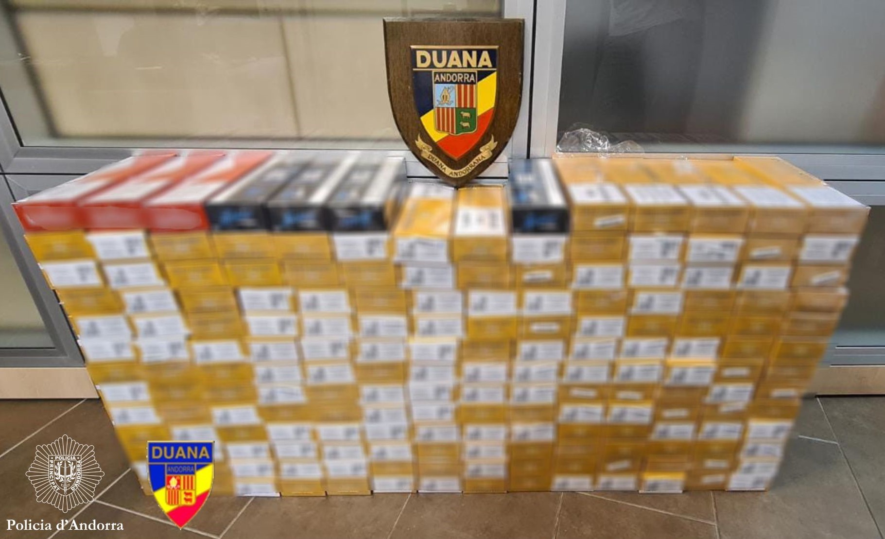 La Policia va detenir, dimecres al vespre a Andorra la Vella, dos homes com a presumptes autors d’un delicte contra l’ordre socioeconòmic per contraban de tabac, després de ser controlats amb 1.800 paquets detabac valorats en 6.650 euros.