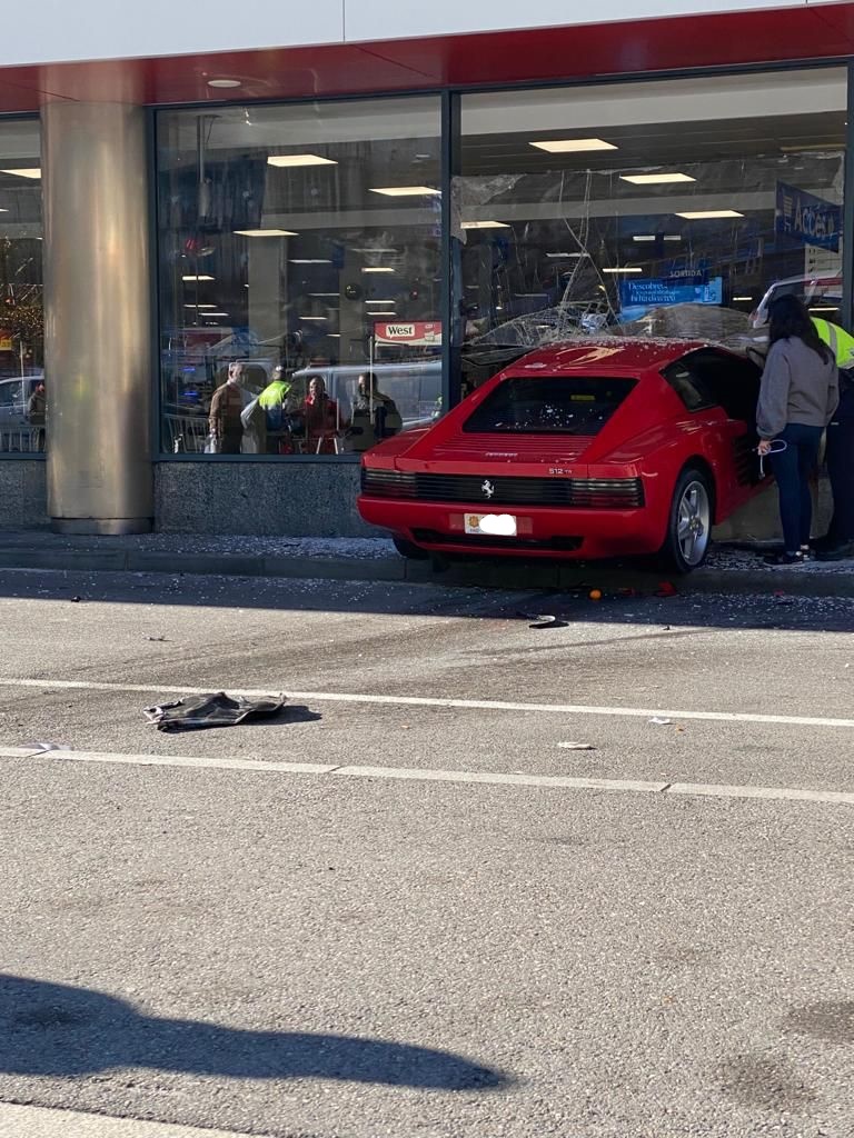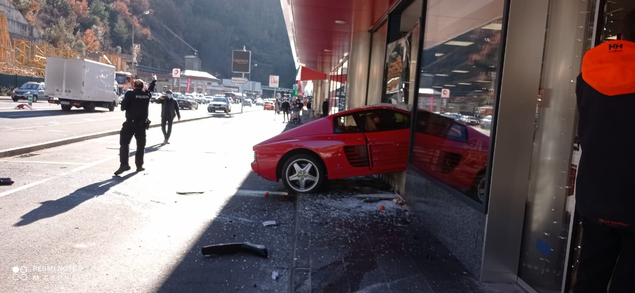 Espectacular accident al centre comercial River de Sant Julià de Lòria que afortunadament no ha comportat ferits de gravetat. El conductor d’un Ferrari 512 amb matrícula del Principat ha perdut el control del vehicle i s'ha encastat contra l’aparador de l’establiment. Segons ha informat la policia, l’accident s'ha produït a les 12.10 hores mentre el vehicle circulava en sentit nord, direcció Sant Julià de Lòria. Per causes que de moment es desconeixen i que hauran d’investigar els agents de la policia, el conductor hauria perdut el control, ha creuat els dos carrils de baixada i ha acabat topant contra la façana de vidre del centre comercial. El sinistre ha deixat tres ferits de poca consideració.