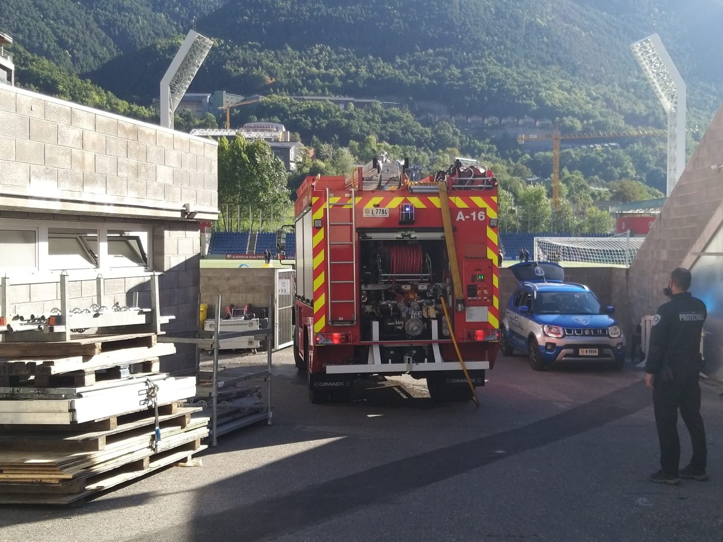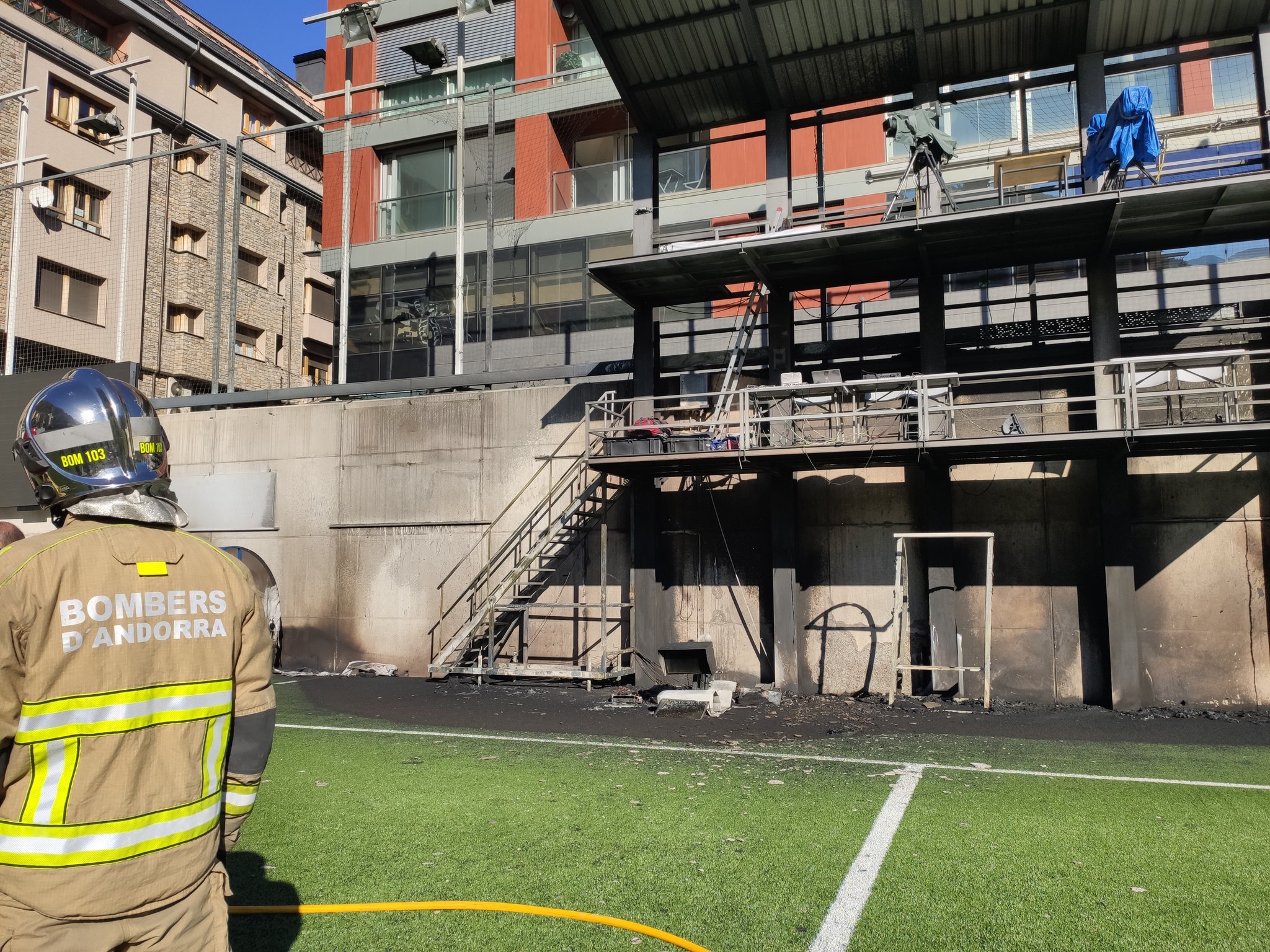 Ensurt i dels grossos aquesta tarda a l'Estadi Nacional, després que la torre amb passarel·la instal·lada a la porteria de la Baixada del Molí s' incendiés i obligués al cos de bombers a desallotjar la zona i a tallar la circulació del mateix carrer. Es desconeixen les causes que han provocat l'incendi de la bastida, però la columna de fum negre que ha provocat es podia observar des de diversos punts d'Andorra la Vella. Cal recordar que aquest dissabte s'ha de disputar a l'Estadi el partit de les classificatòries de la UEFA que ha d'enfrontar a Andorra contra Anglaterra. Queda per veure si la zona de la gespa més propera a l'incendi ha quedat afectada, doncs el sòl és de gespa artificial.