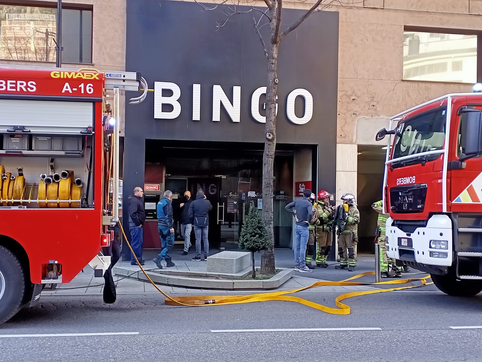 Fort ensurt a la seu del bingo per un incendi a la planta -1 de la seva seu al carrer Prat de la Creu. Els bombers han rebut l'avís a les 10.08, a les 10.15 ja estaven actuant en l'extinció de l'incendi i deu minuts després ja estava extingit.