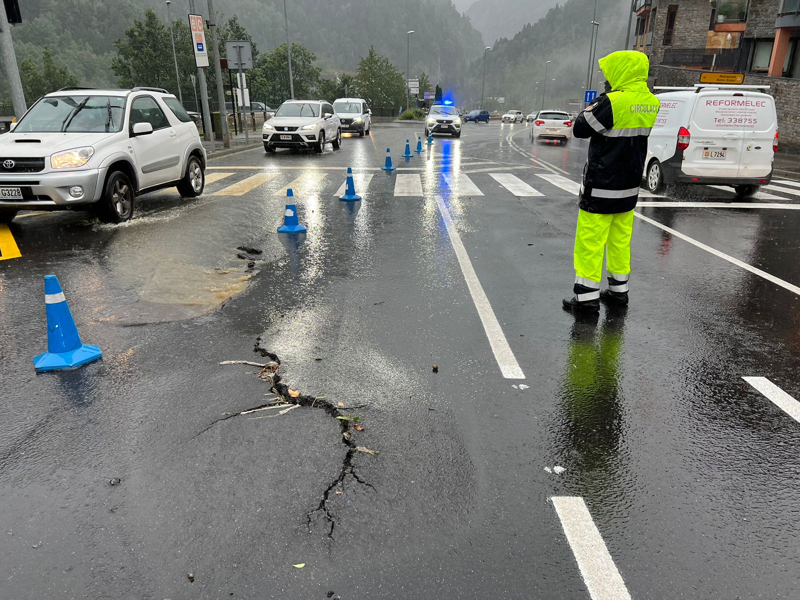 Els fets han passat al voltant de les 17.30 hores, després que hagi caigut una important quantitat d'aigua en poca estona, i han obligat a Policia i agents del Servei de Circulació de la Massana a desplaçar-se fins al lloc dels fets per indicar els desperfectes que s'han causat a la calçada i evitar possibles accidents. També s'hi han acostat efectius del COEX per confirmar que els embornals funcionaven correctament.