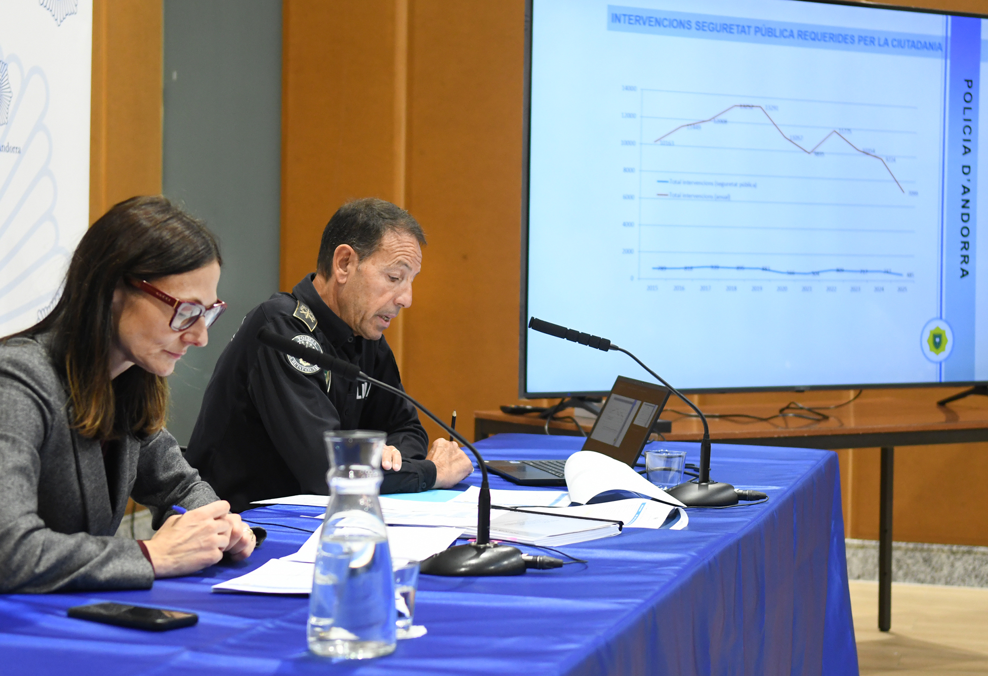 Així de contundent s'ha mostrat avui la ministra de Justícia i Interior, Ester Molné, que, conjuntament amb el director del Cos de Policia, Bruno Lasne, han fet un repàs a les estadístiques sobre seguretat pública i d’aquells delictes que tenen un impacte sobre la convivència de la darrera dècada per evidenciar que lluny d’augmentar, el nombre d’intervencions, detinguts i denúncies no només s’han mantingut estables, a excepció de la disminució registrada el 2021 en plena pandèmia de la Covid-19, sinó que han baixat i, en alguns casos, de forma significativa.