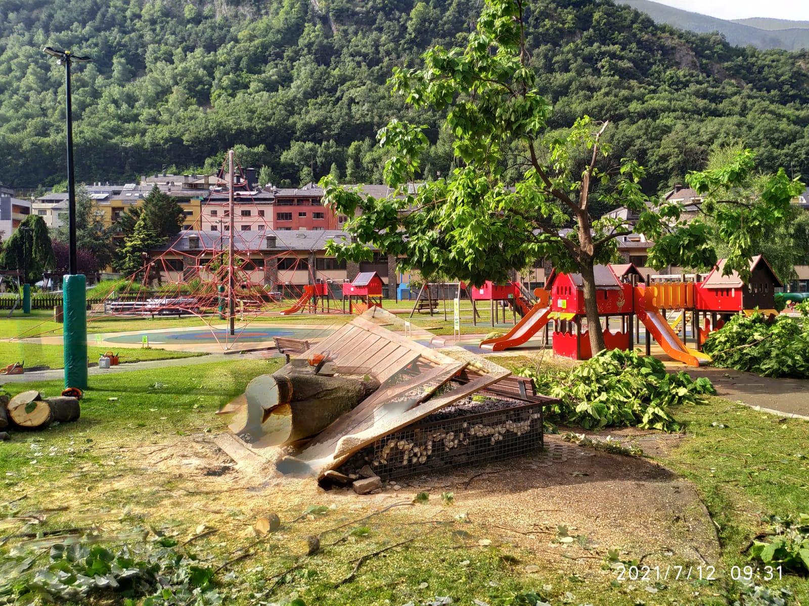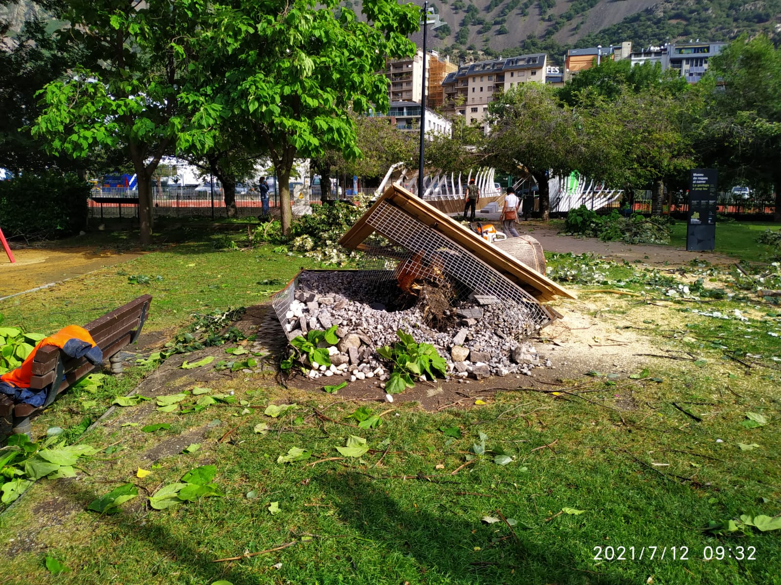 També els accessos a Fontaneda i Bixessarri es van haver de tallar per la caiguda d’arbres i senyals de trànsit. En altres zones també van caure teules, parts de terrasses, xemeneies i rocs.
