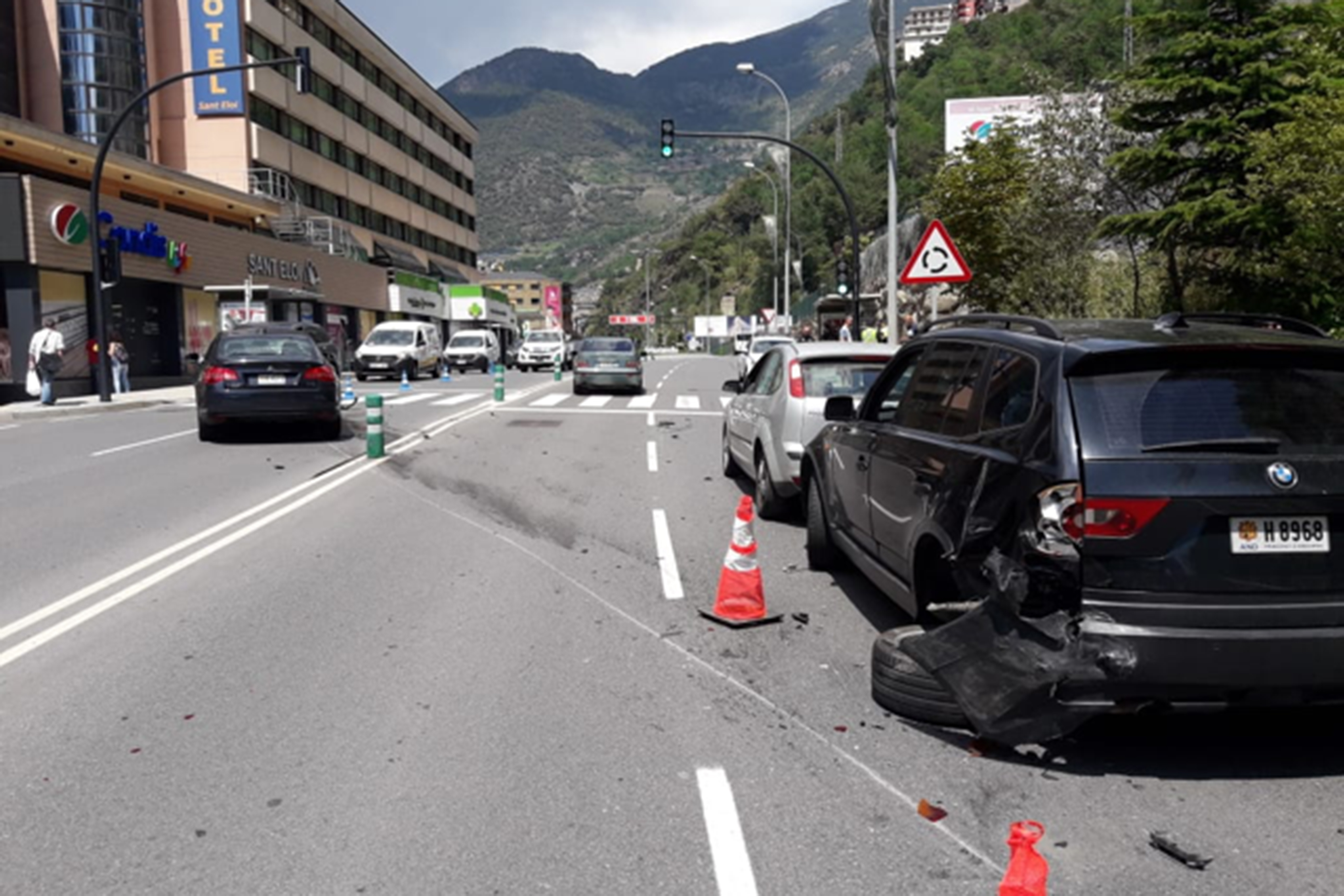 Tres vehicles han estat implicats en un accident aquest dimecres als voltants de les 15 hores. L'incident ha tingut lloc en les proximitats del centre comercial Sant Eloi, a Sant Julià de Lòria. En la topada només s'han produït danys materials en els vehicles, tal com ha informat el Cos de Policia. En aquest cas no s'han hagut de lamentar ferits de cap classe. Dotacions de l'equip de Bombers s'han desplaçat als llocs dels fets per netejar l'asfalt de les restes (vidres, plàstic i líquids) dels vehicles accidentats.
