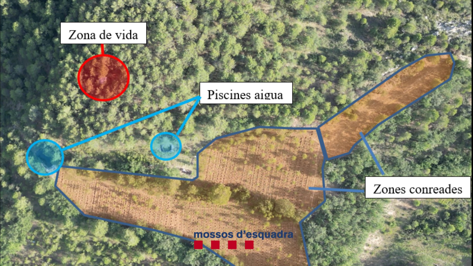 El dispositiu, integrat per efectius del grup d'investigació, seguretat ciutadana i equips de l'ARRO, van constatar que s'havia habilitat una zona de dormitori i una altra de cuina al campament on vivien les persones que cuidaven i vigilaven les plantes. També van localitzar un assecador a uns 200 metres de la plantació, on es van intervenir 12 quilos de cabdells de marihuana en procés d'assecament.