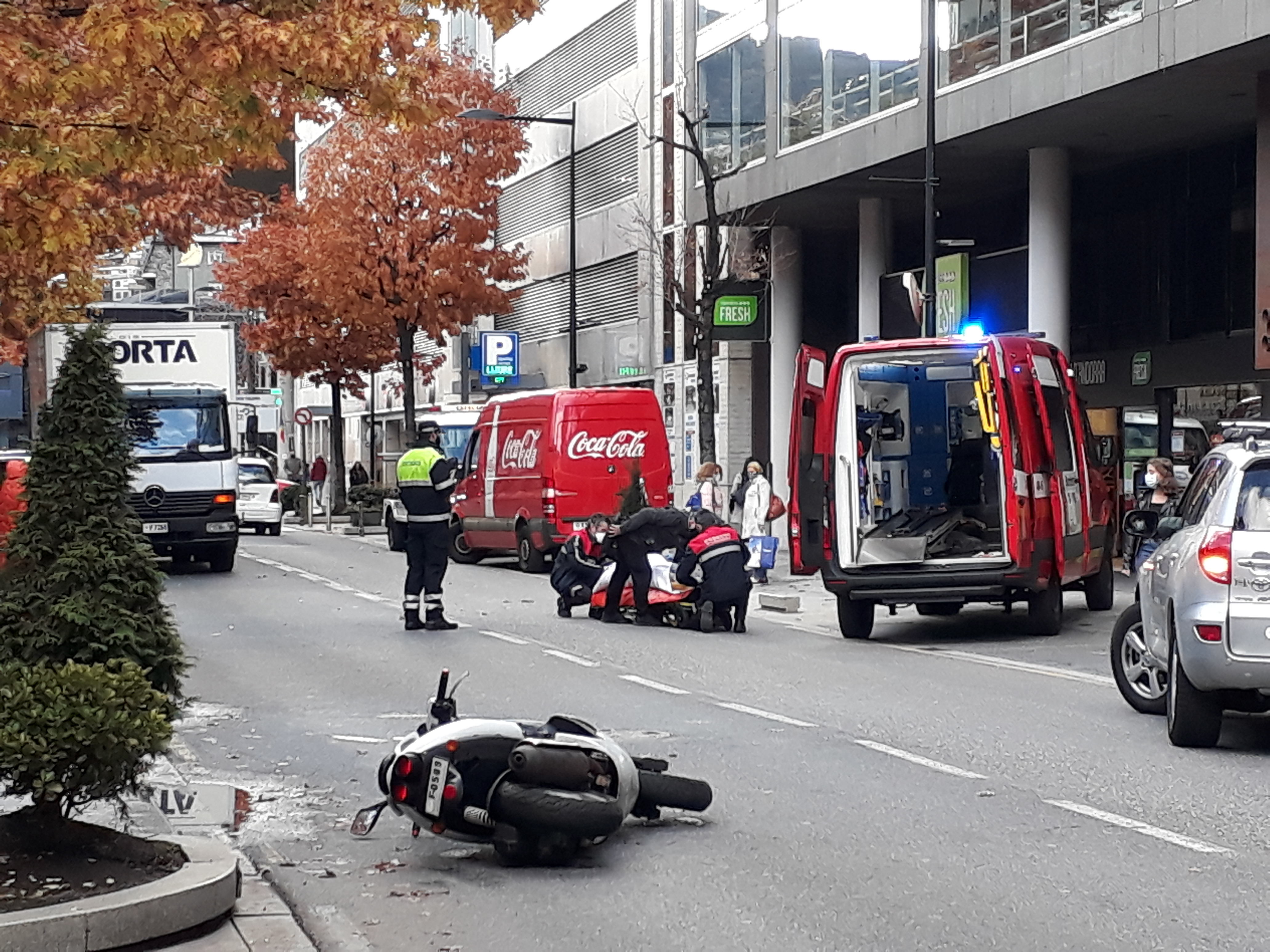 Un motorista ha resultat ferit després de patir un accident, aquesta tarda, al carrer Prat de la Creu, just davant de l'aparcament Vinyes. Els fets han tingut lloc minuts abans de les 4 de la tarda i segons alguns testimonis que eren a la zona, el jove, de 19 anys, hauria caigut sol per motius que encara es desconeixen. Després de la caiguda la moto, una Aprilia SR 125 amb matrícula andorrana, ha sortit lliscant uns metres.