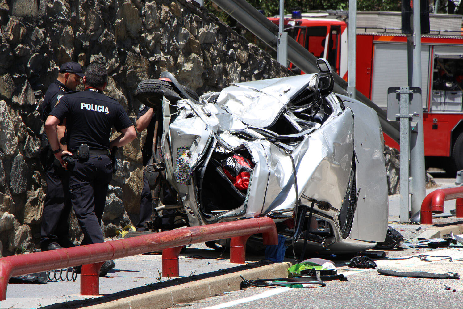 La col·lisió entre el Suzuki i el Mercedes va provocar que el primer perdés el control i acabés impactant lateralment contra una furgoneta Volkswagen California que conduïa la resident de 36 anys que va resultar ferida. El Suzuki i la furgoneta van quedar molt destrossats, sobretot el cotxe que conduïa la veïna d’Encamp per l’impacte produït contra el mur de protecció de la carretera. Segons va informar el cos de policia, el conductor del turisme Mercedes, un home resident de 69 anys, va ser detingut pels delictes d’homicidi imprudent envers la dona que va perdre la vida i lesions per imprudència a la dona que va resultar ferida. Fins al lloc dels fets s’hi van desplaçar dotacions de bombers, de la policia, del servei de Circulació de la Massana i ambulàncies del SUM.